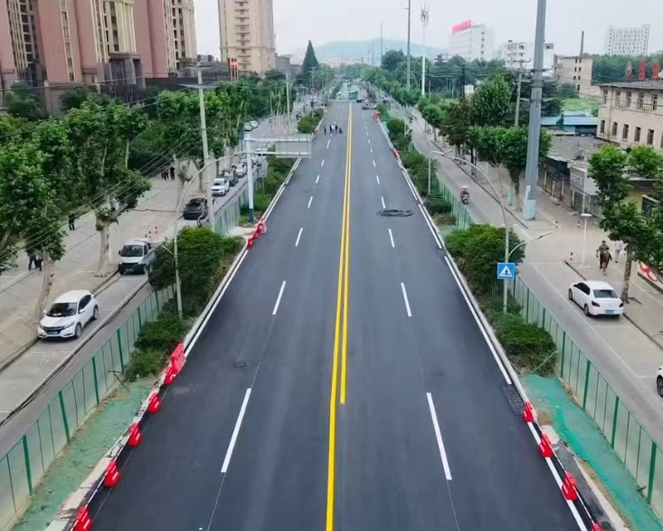 按緊“施工進度鍵”。自項目開工建設以來,項目部始終堅守工期履約目標,各職能部門全員參與一線生產,例行月底總結、節(jié)點任務單下發(fā)、獎罰分明等措施,保障現(xiàn)場進度有序推進。截止十月底,除解放路至航華路段北半幅(建設單位暫未通知封閉施工),本工程其他路段機動車道全面完成瀝青攤鋪,并開放交通放行。