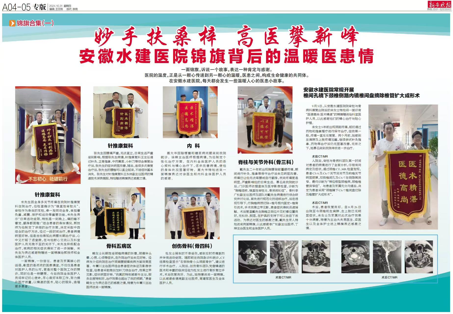 10月31日,新安晚報刊登了水建醫(yī)院《妙手扶桑梓 高醫(yī)攀新峰》專題報道,文章圍繞錦旗背后的溫暖醫(yī)患情進行了深情講述。