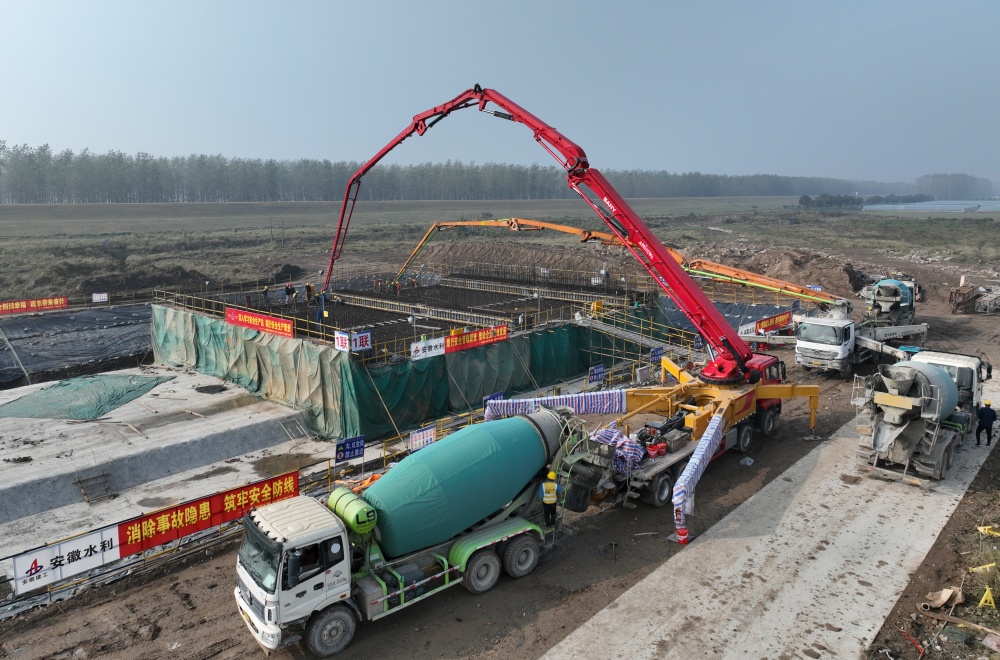 11月2日凌晨4時(shí)15分,經(jīng)過(guò)4天的連續(xù)奮戰(zhàn),國(guó)家150項(xiàng)重大水利工程之一的華陽(yáng)河蓄滯洪區(qū)程營(yíng)進(jìn)洪閘第1聯(lián)和第17聯(lián)閘底板完成近4000方混凝土澆筑。