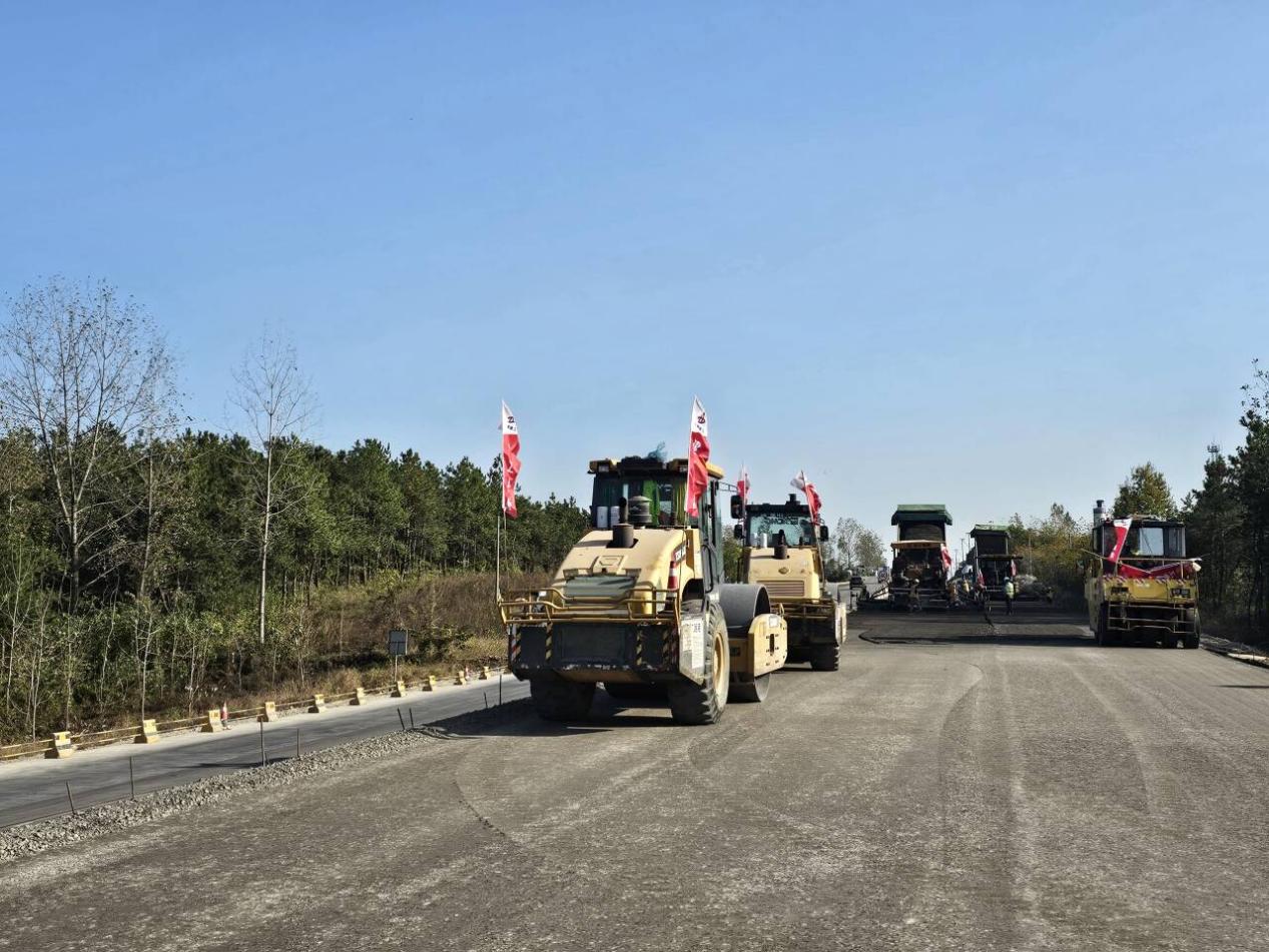 11月5日,建工路港G104項目楊廟段水穩(wěn)下基層(SK12+000-SK12+700)順利攤鋪完成。