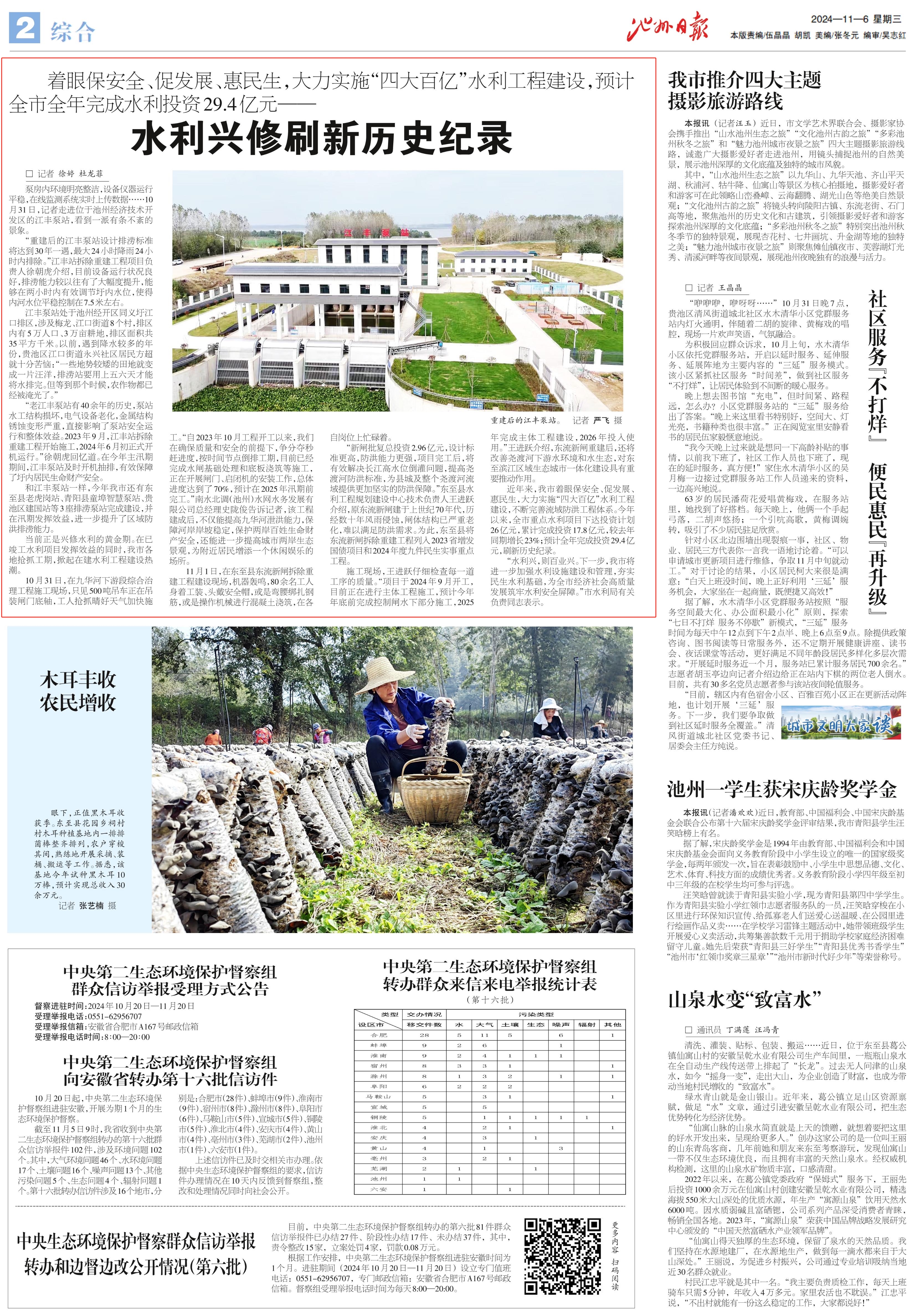 11月6日,安徽水利江豐站項目受到池州日報關注報道。