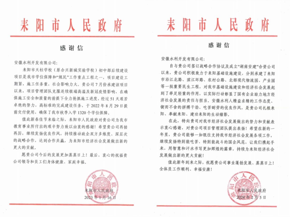 與客戶同心,合作共贏。2024年,安徽水利南方分公司積極融入地方發(fā)展大局,推動耒陽市委市政府與安徽水利高層開展互動交流6次,建立起良好互信關系。在此期間,公司還分別與耒陽市人民政府、耒陽經(jīng)濟開發(fā)區(qū)管理委員會簽訂了戰(zhàn)略合作框架協(xié)議,與耒陽市城市和農(nóng)村建設投資集團有限公司合資成立了湖南安建建設開發(fā)有限公司,建立了政企合作的紐帶。合資公司的成立為助力耒陽基礎設施建設,助推耒陽經(jīng)濟發(fā)展,帶動當?shù)厝丝诰蜆I(yè),增加地方財政稅收等方面貢獻了“湖南安建”的力量,并順利取得建筑工程施工總承包貳級和市政公用工程施工總承包貳級資質資質。