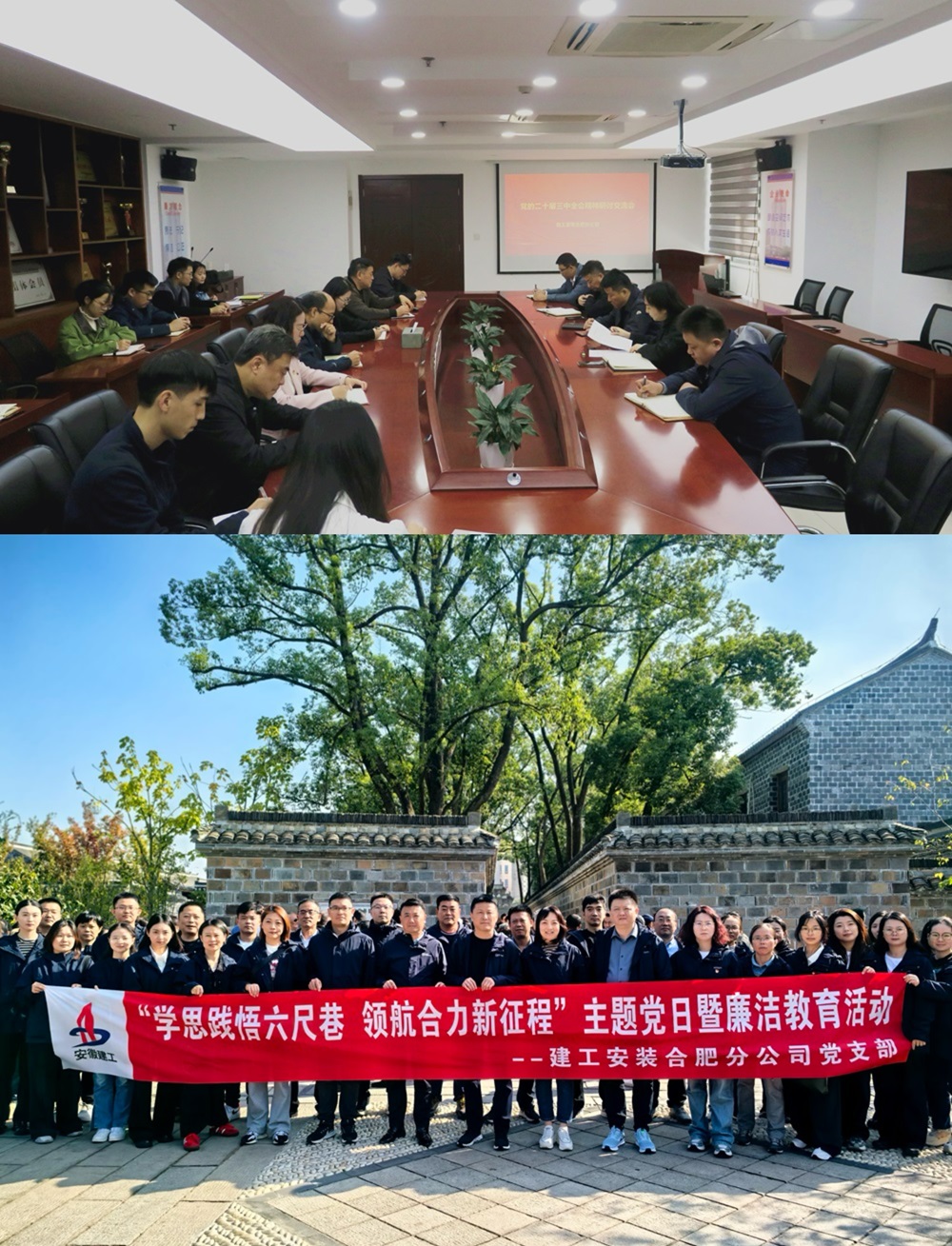 10月23日上午,建工安裝合肥分公司黨支部召開研討交流會,會上對習(xí)近平總書記考察安徽重要講話精神以及黨的二十屆三中全會精神予以系統(tǒng)闡述與解讀。會議指出,需全力以赴抓好習(xí)近平總書記考察安徽重要講話精神與二十屆三中全會精神的貫徹落實工作。11月2日,分公司黨支部組織人員前往“六尺巷”,沿著習(xí)總書記的考察足跡,深入學(xué)習(xí)貫徹習(xí)近平總書記考察安徽重要講話精神 。