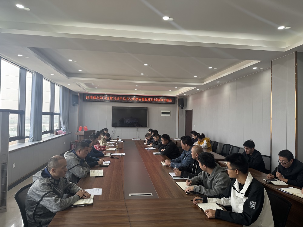 蚌埠建材組織召開學(xué)習(xí)傳達(dá)習(xí)近平總書記考察安徽重要講話精神專題會,公司領(lǐng)導(dǎo)班子、中層副職及以上管理人員、部分黨員和青年團(tuán)員代表參加會議。會議要求,各中心、各站點要以學(xué)習(xí)習(xí)近平總書記在安徽考察時的重要講話精神為契機(jī),將習(xí)近平總書記的講話精神轉(zhuǎn)化為實干擔(dān)當(dāng)?shù)膹?qiáng)大動力,堅持目標(biāo)不變、任務(wù)不減,迎難而上,奮發(fā)奮進(jìn),為完成全年目標(biāo)任務(wù)而努力奮斗。