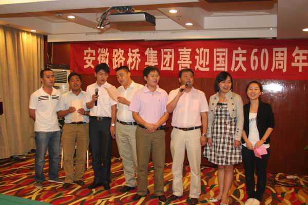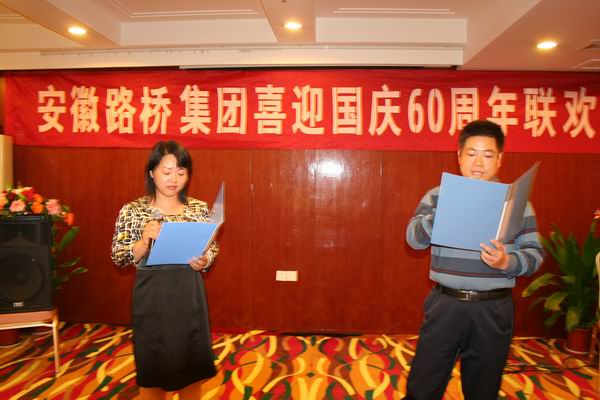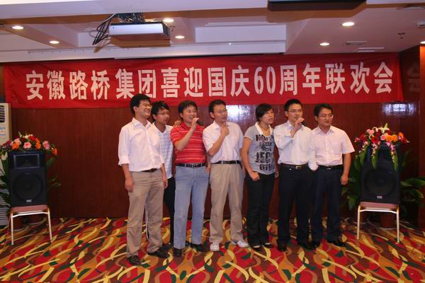 金風(fēng)送爽飄桂香,皓月相聚情意長。為進(jìn)一步增進(jìn)與基層員工的溝通聯(lián)系,促進(jìn)企業(yè)和諧發(fā)展,提升企業(yè)凝聚力。9月26日下午,省路橋集團(tuán)在肥舉行“喜迎國慶60周年聯(lián)歡會”。 公司領(lǐng)導(dǎo)班子成員,各直屬項(xiàng)目主要負(fù)責(zé)人、生產(chǎn)技術(shù)管理骨干代表,各類先進(jìn)分子70多人歡聚一堂,共同慶賀偉大祖國60歲生日和傳統(tǒng)中秋佳節(jié)以及公司今年來各項(xiàng)工作所取得的業(yè)績。聯(lián)歡會由該公司辦公室夏磊和李曉明主持。
