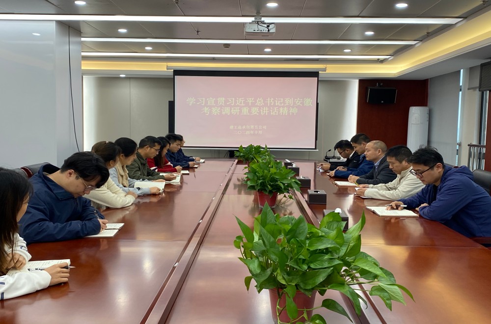 10月31日,第五公司召開專題會議,傳達學(xué)習(xí)習(xí)近平總書記考察安徽重要講話精神。會議要求,一要提高政治站位,堅定擁護“兩個確立”、堅決做到“兩個維護”,迅速掀起學(xué)習(xí)宣貫熱潮,把握豐富內(nèi)涵、吃透精髓要義。二是深入貫徹落實習(xí)近平總書記關(guān)于抓好第四季度經(jīng)濟工作指示精神,全力以赴搶抓市場經(jīng)營,加快在建項目建設(shè),以高質(zhì)高效完成全年各項目標(biāo)任務(wù)檢驗學(xué)習(xí)貫徹成效。