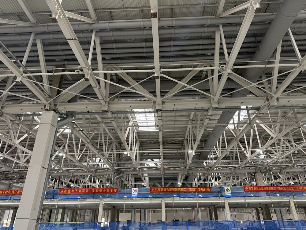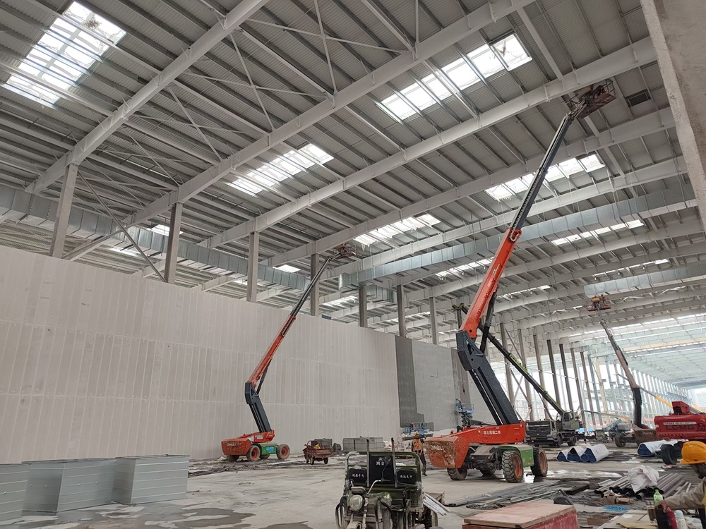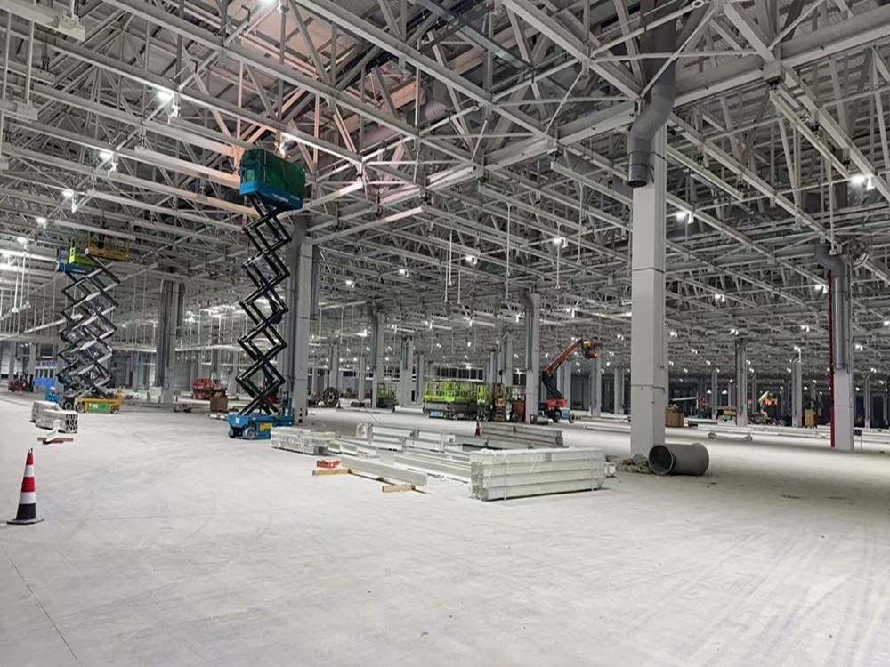 截至目前,車(chē)間一B區(qū)焊裝車(chē)間內(nèi)的給排水管道、消防管道、暖通風(fēng)管、空調(diào)水管、虹吸雨水、630循環(huán)水管均全部安裝完成,已全面進(jìn)入試壓階段。正在進(jìn)行車(chē)間一沖壓車(chē)間及QA樓安裝工作,電氣系統(tǒng)進(jìn)入電纜放線(xiàn)安裝階段,暖通系統(tǒng)進(jìn)入風(fēng)口風(fēng)閥安裝階段。