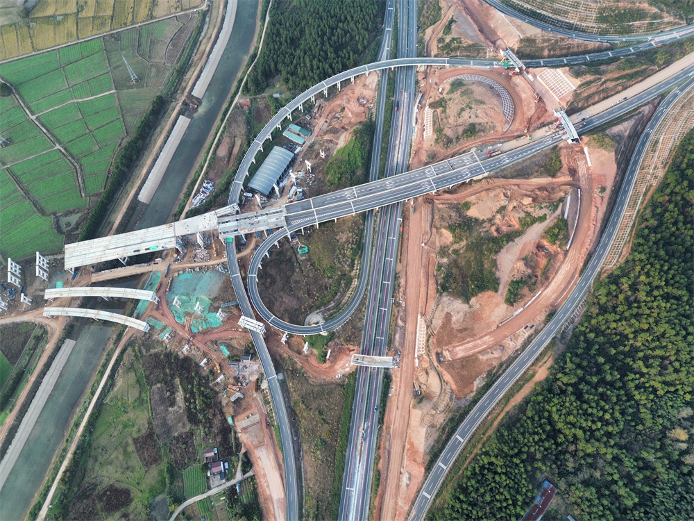 涇青高速?zèng)芸h樞紐位于宣城市涇縣黃村鎮(zhèn),設(shè)計(jì)通過涇縣樞紐與蕪黃、宣涇高速之間實(shí)現(xiàn)交通轉(zhuǎn)換。作為本標(biāo)段的控制性工程,涇青高速項(xiàng)目主線及匝道橋需6次上跨既有蕪黃、宣涇高速通行段落,橋梁上部結(jié)構(gòu)包含預(yù)制箱梁、鋼箱梁等多種形式,現(xiàn)場環(huán)境復(fù)雜,施工難度大、安全風(fēng)險(xiǎn)高,備受高速管理處、路政、交警等社會(huì)各界的高度關(guān)注。