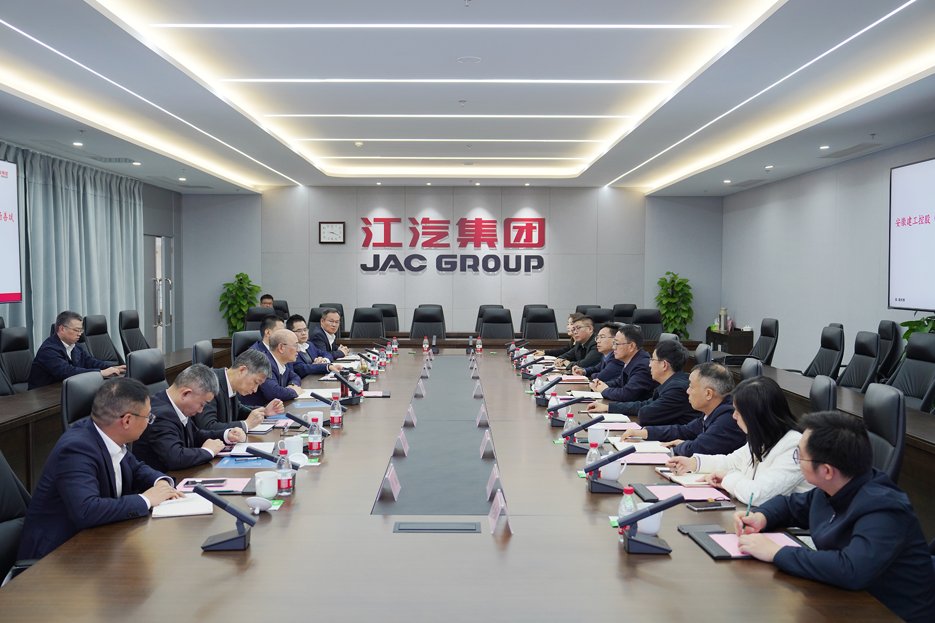 11月22日上午,安徽建工集團黨委書記、董事長楊善斌率隊拜訪江汽集團,與江汽集團黨委書記、董事長、總經理項興初舉行工作會談。