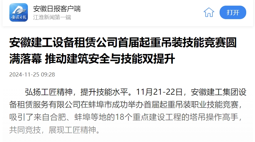 11月21-22日,安徽建工集團設(shè)備租賃服務(wù)有限公司在蚌埠市成功舉辦首屆起重吊裝職業(yè)技能競賽,競賽以“當(dāng)好主人翁 建功大發(fā)展”為主題,吸引了來自合肥、蚌埠等地的18個重點建設(shè)工程的塔吊操作高手,共同競技,展現(xiàn)工匠精神。