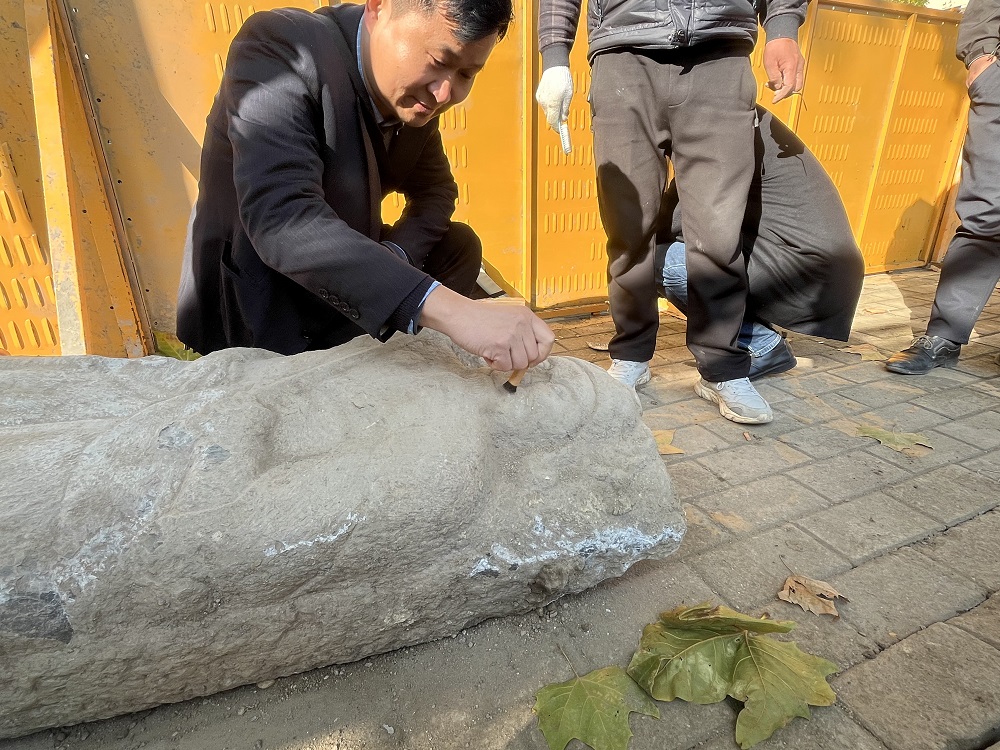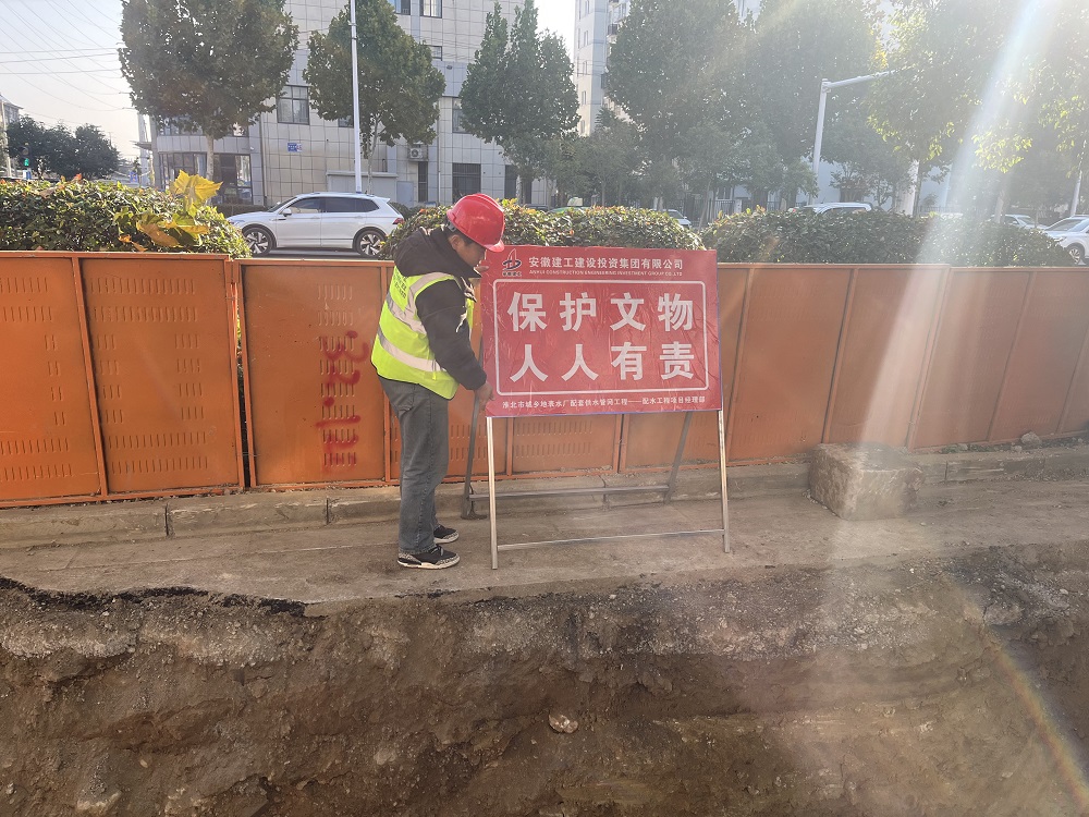 項(xiàng)目部在開展溝槽開挖作業(yè)的過程中,意外發(fā)現(xiàn)一座石像,疑似文物,項(xiàng)目部立即暫停了施工活動(dòng),對(duì)現(xiàn)場(chǎng)進(jìn)行了保護(hù),并迅速與當(dāng)?shù)匚奈锊块T取得了聯(lián)系。隨后,淮北市文物局專家抵達(dá)現(xiàn)場(chǎng),項(xiàng)目部全程提供協(xié)助,順利完成了文物的勘查、登記及移交工作,確保了文物得到了恰當(dāng)?shù)谋Wo(hù)。經(jīng)專家初步鑒定,這是一尊明代的石像,具有很高的歷史與藝術(shù)價(jià)值。
