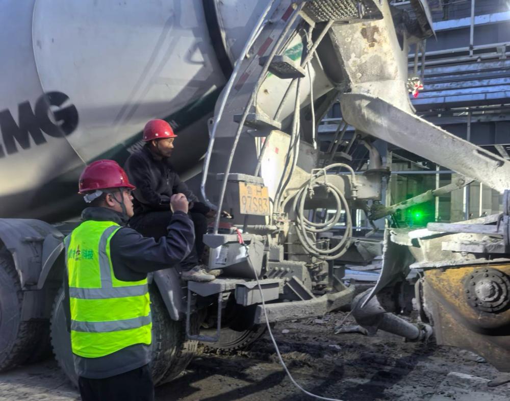 為保障項目順利推進,建工建材克服了夏季高溫、車輛管制、暴雨路滑等不利因素,通過優(yōu)化運輸路線、增加運輸車輛、加強現(xiàn)場協(xié)調(diào)等方式,有效保障了混凝土的連續(xù)供應。尤其在四季度,累計供應量超過20萬方,投入攪拌車145輛,泵送設備25臺,召開專項保供會議10余次,切實為項目建設贏得了寶貴時間。