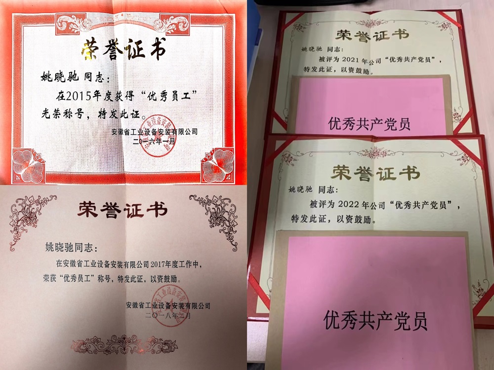 在繁忙的工作之余,姚曉馳對專業(yè)知識的探索與熱愛從未有片刻停歇。他仿若一位求知若渴的行者,積極主動地在知識的海洋中破浪前行,持續(xù)拓寬并深化自身的知識體系。他參與研發(fā)的《狹窄空間內(nèi)設(shè)備分段吊裝組對安裝工法》成功榮獲安徽省住房和城鄉(xiāng)建設(shè)廳頒發(fā)的省級工法稱號,《提高電伴熱施工質(zhì)量一次驗收通過率》也榮獲了安徽省工程建設(shè)質(zhì)量管理小組成果三等獎。