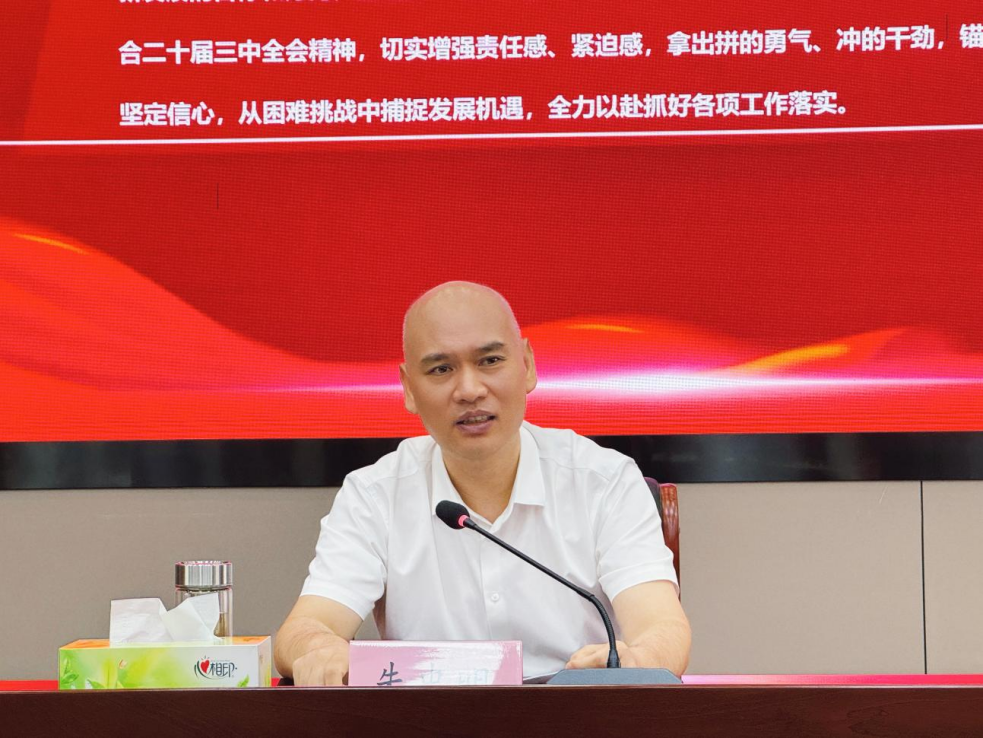 在黃山建投,朱忠明根據(jù)集團(tuán)改革發(fā)展實(shí)際,從提高政治站位、深刻理解和把握全會(huì)精神的精髓要義、全面準(zhǔn)確理解決定提出的重大舉措,堅(jiān)定信心和決心,充分肯定集團(tuán)改革發(fā)展取得的成績,將深化改革向縱深推進(jìn),加強(qiáng)組織領(lǐng)導(dǎo),全力以赴抓好全會(huì)精神貫徹落實(shí),推動(dòng)全會(huì)精神在集團(tuán)落地見效三個(gè)方面展開宣講。朱忠明指出,要嚴(yán)格落實(shí)集團(tuán)的各項(xiàng)制度要求和集團(tuán)黨委的決策部署;要按照深入屬地、深耕區(qū)域的要求,以投資帶動(dòng)施工,積極拓展市場;要利用集團(tuán)的產(chǎn)業(yè)鏈優(yōu)勢,嚴(yán)管項(xiàng)目,培育好管理團(tuán)隊(duì),融入地方發(fā)展。