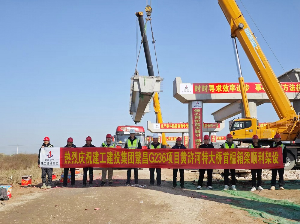 12月1日上午,由建工建投集團承建的繁昌區(qū)G236項目二標段控制性工程黃滸河特大橋首榀30m箱梁順利架設完成。