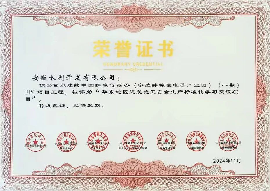 11月28日,從華東地區(qū)建筑安全聯(lián)誼會(huì)傳來(lái)喜訊,安徽水利承建的中國(guó)蚌埠傳感谷(寧波蚌埠微電子產(chǎn)業(yè)園)EPC項(xiàng)目、蚌埠液力機(jī)械有限公司擴(kuò)建及智能制造基地建設(shè)項(xiàng)目獲評(píng)“華東地區(qū)建筑施工安全生產(chǎn)標(biāo)準(zhǔn)化學(xué)習(xí)交流項(xiàng)目”,這是繼2023年兩個(gè)項(xiàng)目獲得“華東地區(qū)施工安全生產(chǎn)標(biāo)準(zhǔn)化工地”榮譽(yù)后再一次獲得此榮譽(yù)。