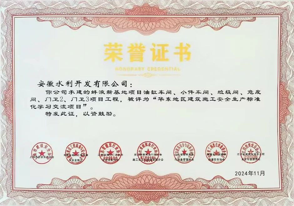 本次兩個(gè)項(xiàng)目獲得此項(xiàng)榮譽(yù),是對(duì)安徽水利項(xiàng)目安全管理水平的高度肯定。公司將繼續(xù)強(qiáng)化項(xiàng)目標(biāo)準(zhǔn)化安全管理,促進(jìn)工程施工與先進(jìn)技術(shù)相結(jié)合,打造安心工地,以高水平安全為公司高質(zhì)量發(fā)展保駕護(hù)航。