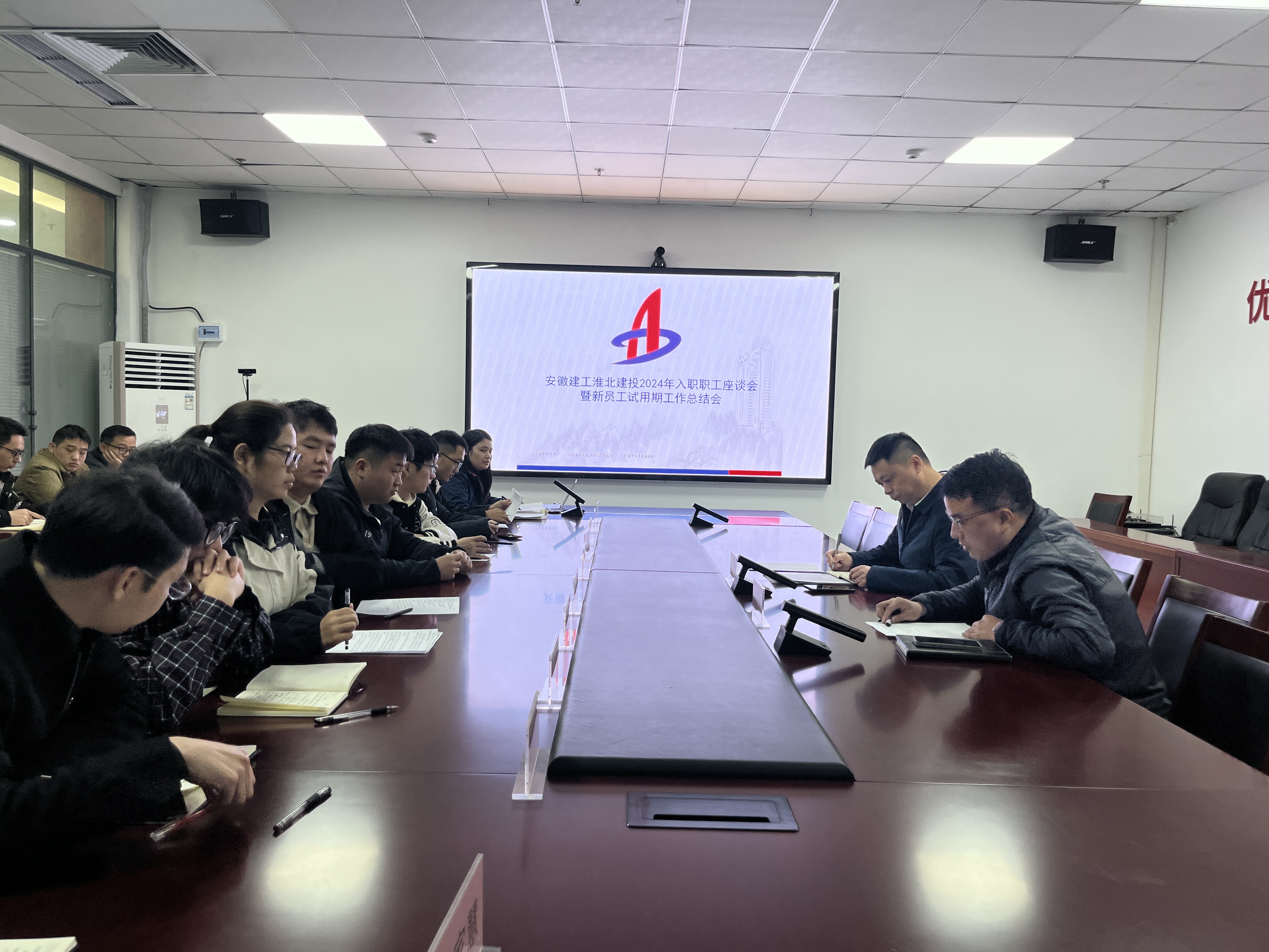 為進(jìn)一步助力新員工融入,引領(lǐng)新人成長,2024年12月3日上午,淮北建投在公司會(huì)議室召開了“2024年新入職職工座談會(huì)暨新員工試用期工作總結(jié)會(huì)”?;幢苯ㄍ饵h委書記、董事長、總經(jīng)理張玉明參會(huì),淮北建投黨委委員、副總經(jīng)理馬陽陽主持會(huì)議,2024年18名入職新員工到場參會(huì)。