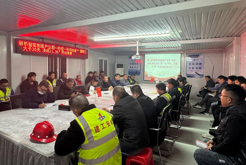 近日,建工安裝滁州分公司合肥新橋智能制造產(chǎn)業(yè)園一階段一標(biāo)機(jī)電安裝項(xiàng)目部召開“大干30天 決戰(zhàn)11.30”勞動(dòng)競(jìng)賽總結(jié)表彰大會(huì),表彰競(jìng)賽期間涌現(xiàn)出的先進(jìn)個(gè)人和優(yōu)勝參建班組。分公司勞動(dòng)競(jìng)賽領(lǐng)導(dǎo)小組成員、項(xiàng)目部全體員工及參建班組負(fù)責(zé)人等參會(huì),會(huì)議由分公司黨支部書記、副經(jīng)理程茂麗主持。