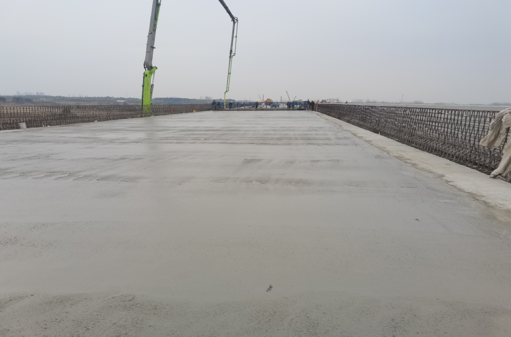 該首件工程為團肥路分離立交橋K65+031.35左幅111-114跨(第21聯(lián))橋面現(xiàn)澆水泥混凝土鋪裝層,凈寬15.5m,厚度10cm。