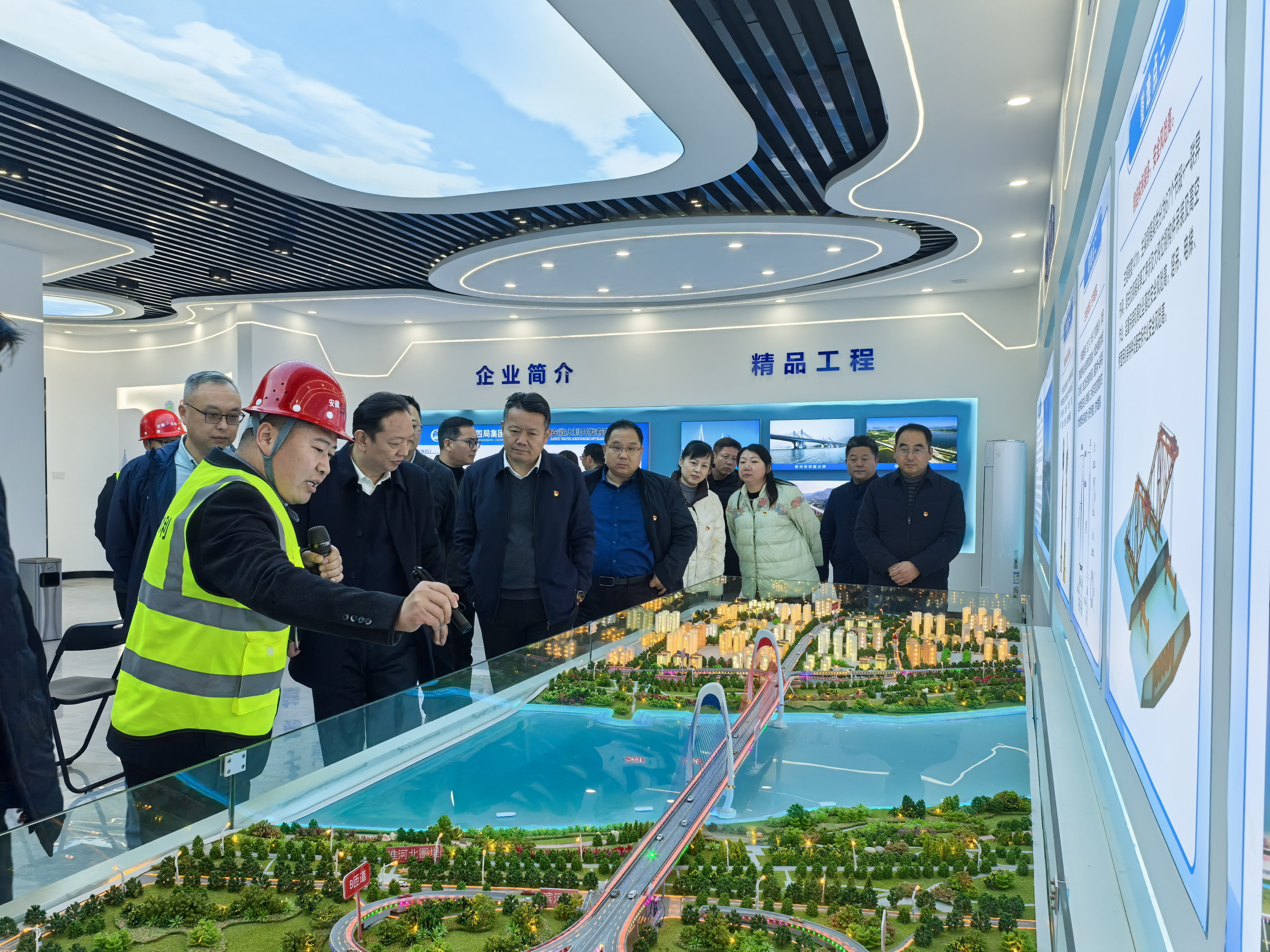 共建雙方赴延安路大橋項(xiàng)目實(shí)地觀摩,了解了項(xiàng)目總體情況和建設(shè)進(jìn)展。座談會上,雙方共同觀看了安徽水利宣傳片,并就各自黨組織建設(shè)與法治工作建設(shè)展開了深入交流。