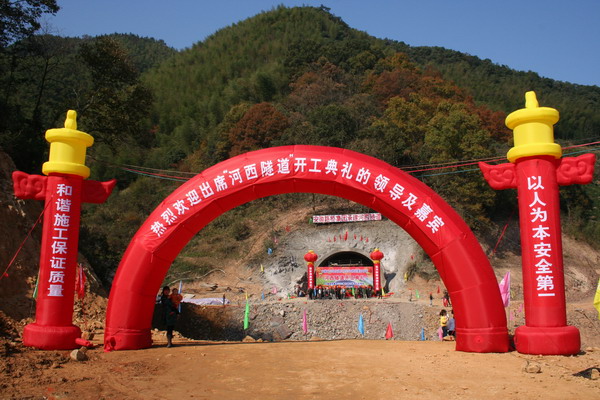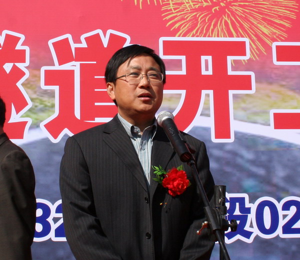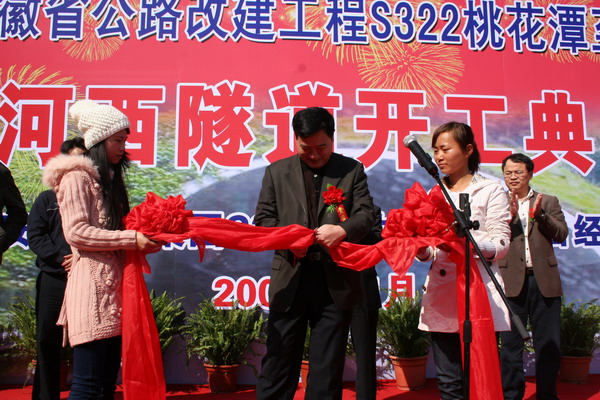童宗勝董事長(zhǎng)宣布隧道開(kāi)工。吳銳智書(shū)記為隧道開(kāi)工剪彩。