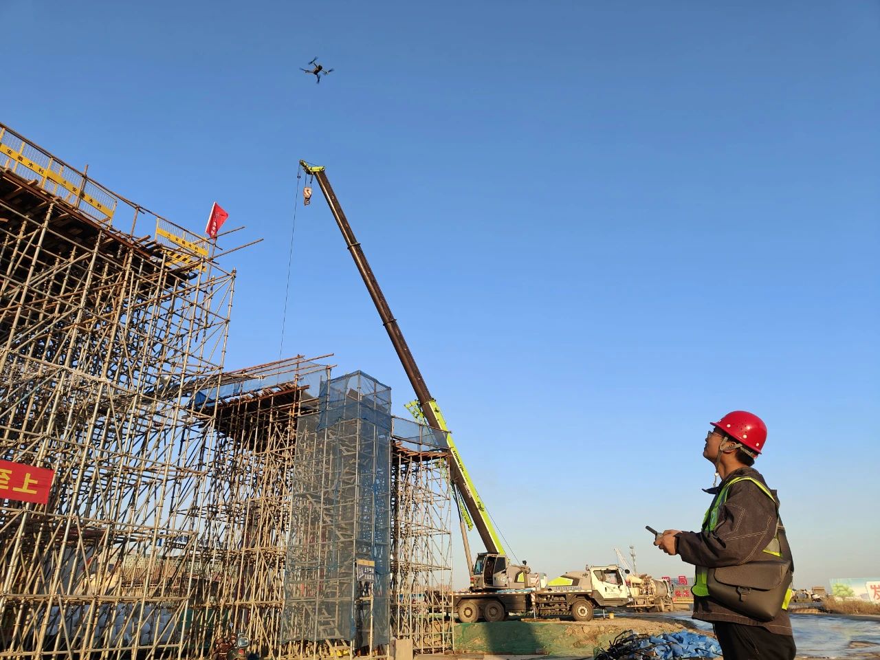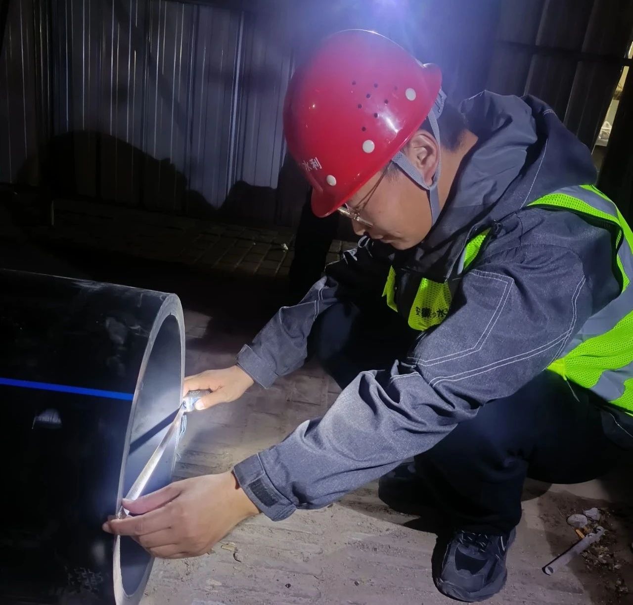 12月9日凌晨1點左右,王杰繞著剛剛澆筑的延安路大橋北岸主線引橋第9聯(lián)底腹板和A匝道第2聯(lián)頂板仔細巡查一遍,向后場拌和站和項目施工群發(fā)送完報備信息后回到宿舍。