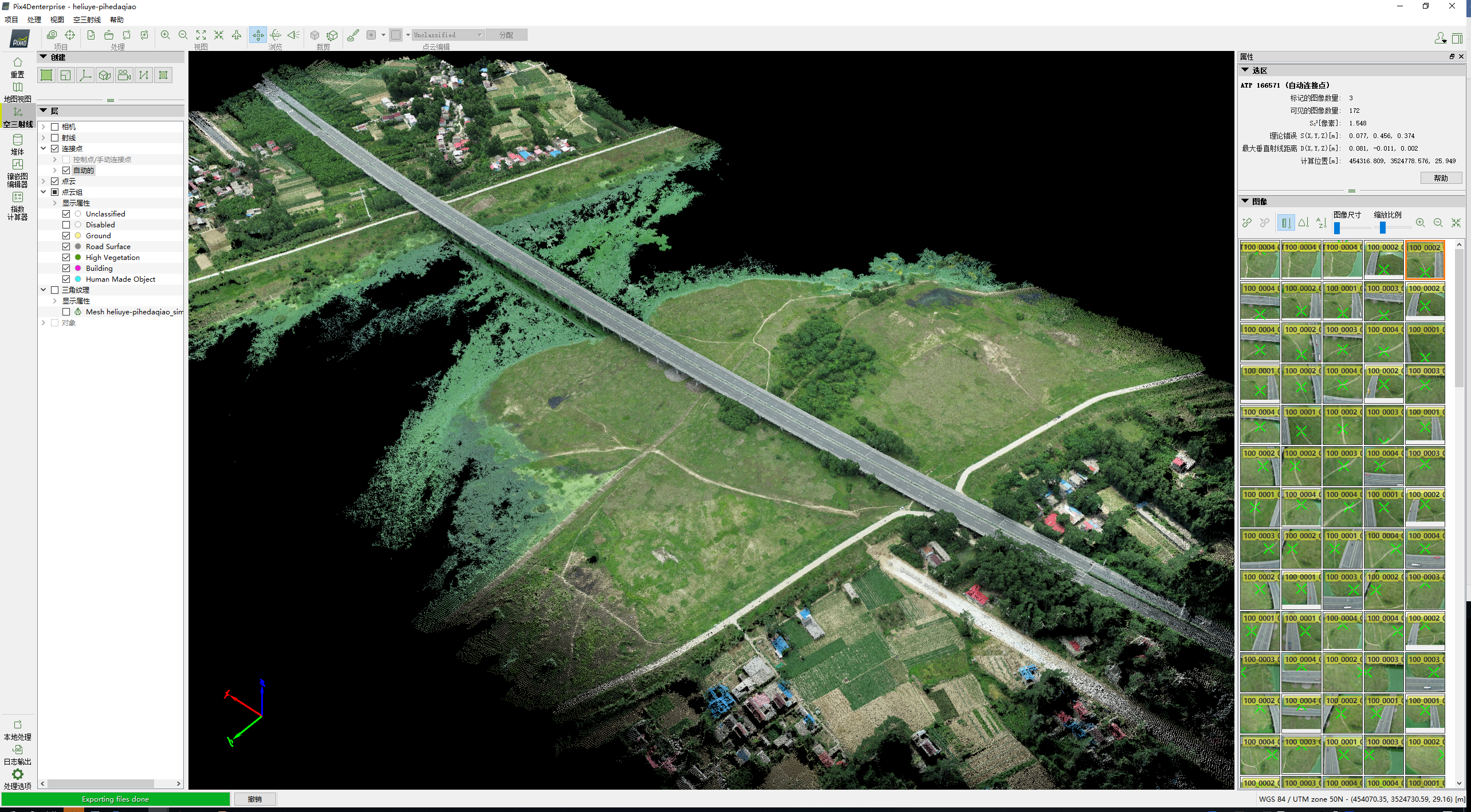 為了破解這一難題,項(xiàng)目部引入了實(shí)景三維合成技術(shù),充分利用無人機(jī)激光雷達(dá)掃描航拍、并結(jié)合衛(wèi)星遙感等先進(jìn)數(shù)據(jù)源,成功從多個(gè)維度捕捉了地面場景的圖像,進(jìn)而生成了高精度、高分辨率且真實(shí)感強(qiáng)的三維點(diǎn)云模型,并與衛(wèi)星地圖結(jié)合,真實(shí)反映點(diǎn)云的具體位置,房屋類型,村莊、道路名稱等。這一模型的應(yīng)用,不僅能夠透過樹木看地形,直觀地了解地形地貌特征,還利用點(diǎn)云模型進(jìn)行篩分,提取地面高程點(diǎn)信息,通過基準(zhǔn)地面高程達(dá)到多個(gè)施工隊(duì)伍土方自平衡,大大節(jié)省了現(xiàn)場踏勘的時(shí)間,顯著提高了工作效率。