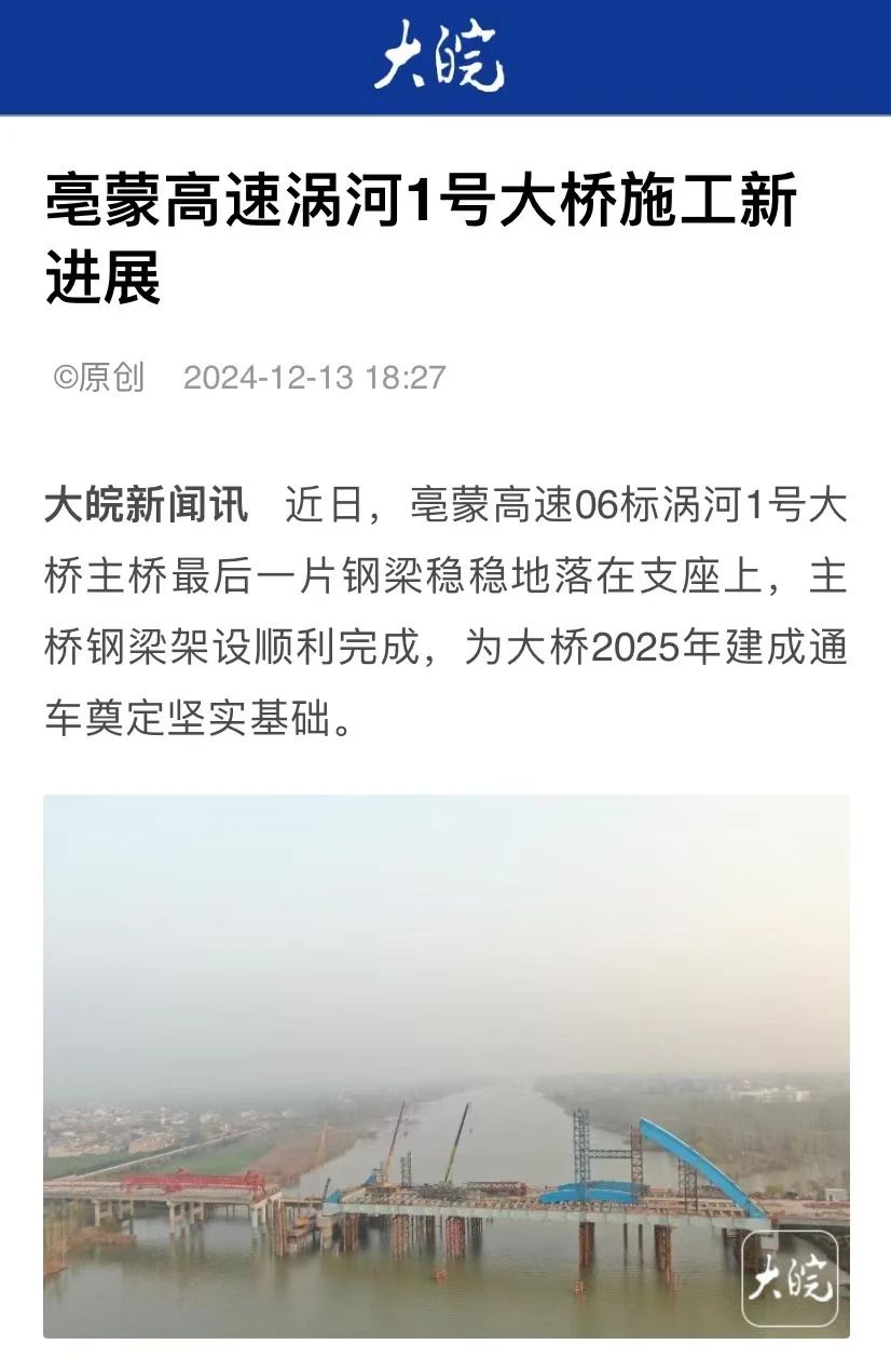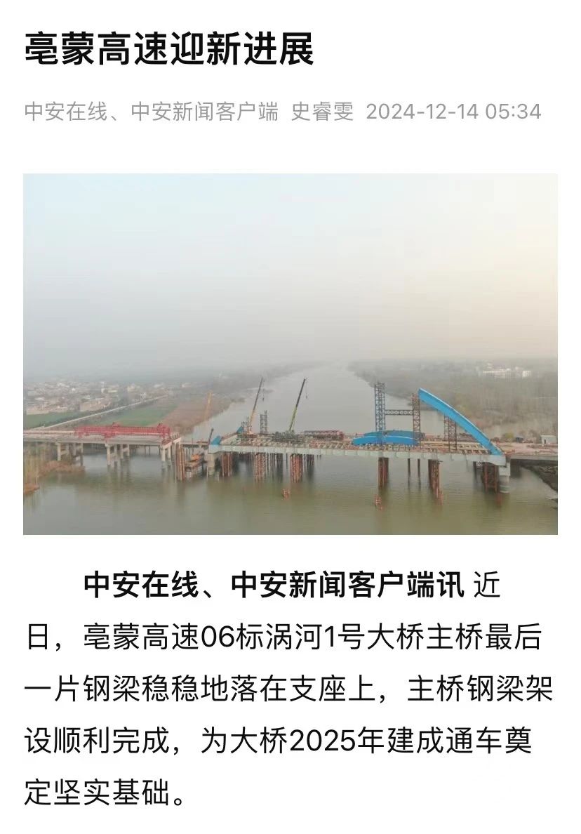 近日,安徽水利承建的亳蒙高速06標(biāo)渦河1號大橋主橋鋼梁架設(shè)順利完成,為大橋2025年建成通車奠定堅(jiān)實(shí)基礎(chǔ),受到中安在線、大皖新聞、亳州晚報(bào)等主流媒體關(guān)注報(bào)道。