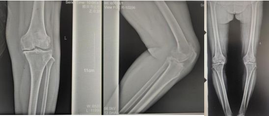 張女士于10年前勞累后左膝疼痛,干活后疼痛較重,陰雨天及受涼時(shí)疼痛明顯,行走時(shí)可聞及關(guān)節(jié)內(nèi)異響,時(shí)有“打軟腿”現(xiàn)象,曾到附近多家醫(yī)院診治,給予膝關(guān)節(jié)針灸、膏藥外貼、口服藥物等“保守”治療,治療后疼痛癥狀略有好轉(zhuǎn),但易復(fù)發(fā);近2年患者左膝關(guān)節(jié)疼痛逐漸加重,行走跛行,下蹲及上下樓梯困難,活動(dòng)時(shí)疼痛明顯,休息、保守治療后疼痛無明顯好轉(zhuǎn)。
