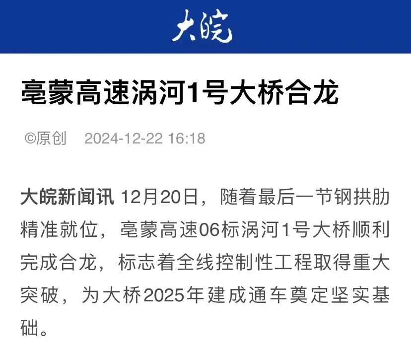 12月20日,隨著最后一節(jié)鋼拱肋精準就位,安徽水利亳蒙高速06標渦河1號大橋順利完成合龍,受到大皖新聞、亳州市交通運輸局官微等關注報道。