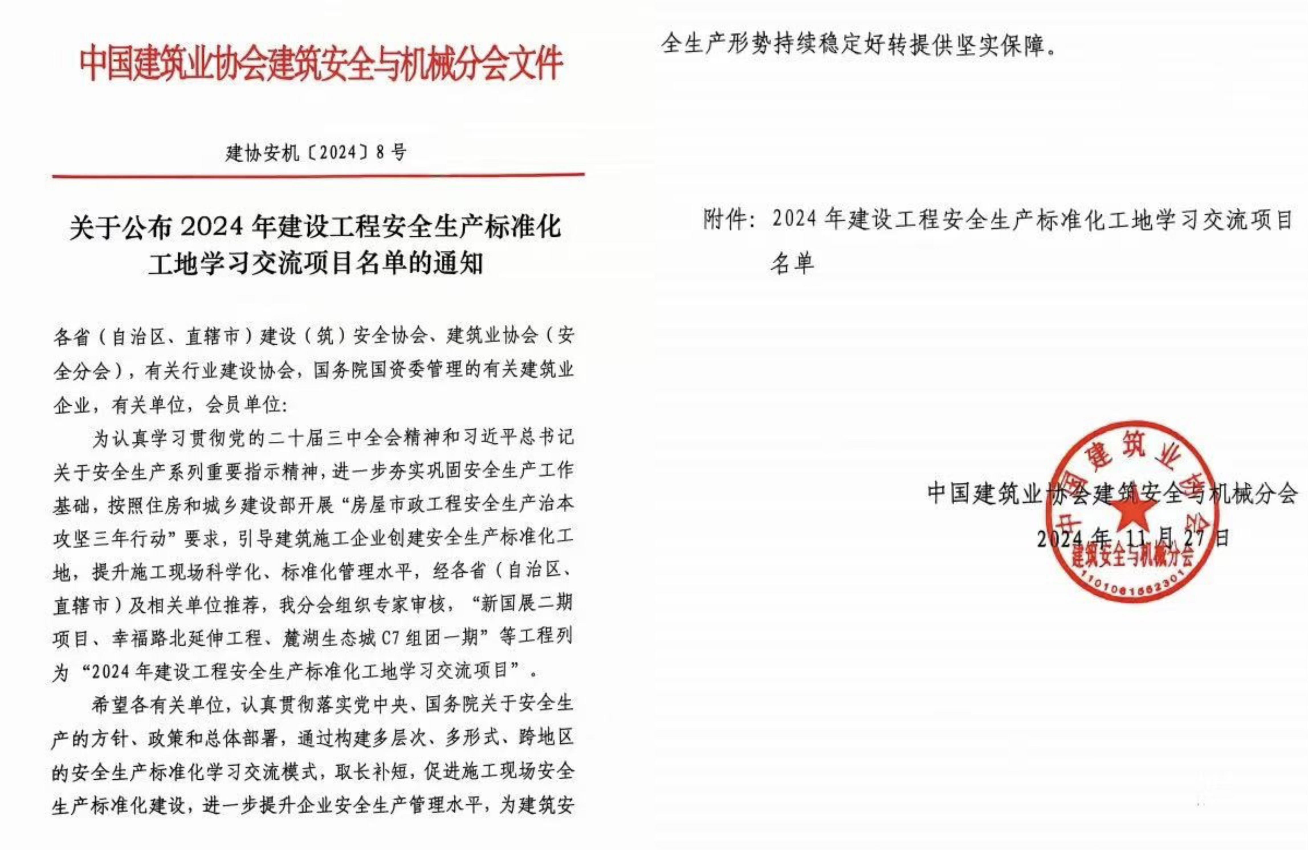 全國(guó)建設(shè)工程安全生產(chǎn)標(biāo)準(zhǔn)化工地學(xué)習(xí)交流項(xiàng)目是國(guó)內(nèi)建筑安全文明施工領(lǐng)域的最高榮譽(yù),對(duì)項(xiàng)目安全生產(chǎn)預(yù)防措施及管理工作的質(zhì)量、職業(yè)健康安全管理體系的運(yùn)行、文明施工等綜合管理水平有著很高的要求。此次獲評(píng),標(biāo)志著項(xiàng)目在安全管理體系、標(biāo)準(zhǔn)化施工管理和安全文明施工管理等領(lǐng)域均達(dá)到行業(yè)領(lǐng)先,對(duì)建工交航打造品牌項(xiàng)目,提升核心競(jìng)爭(zhēng)力具有重要意義。
