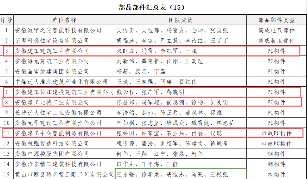 近日,安徽省裝配式建筑產(chǎn)業(yè)協(xié)會發(fā)布“2024年度有影響力裝配式部品部件生產(chǎn)單位”,建工工業(yè)化所屬四家企業(yè)榜上有名,彰顯公司在安徽省裝配式產(chǎn)業(yè)行業(yè)中“領頭羊”地位。