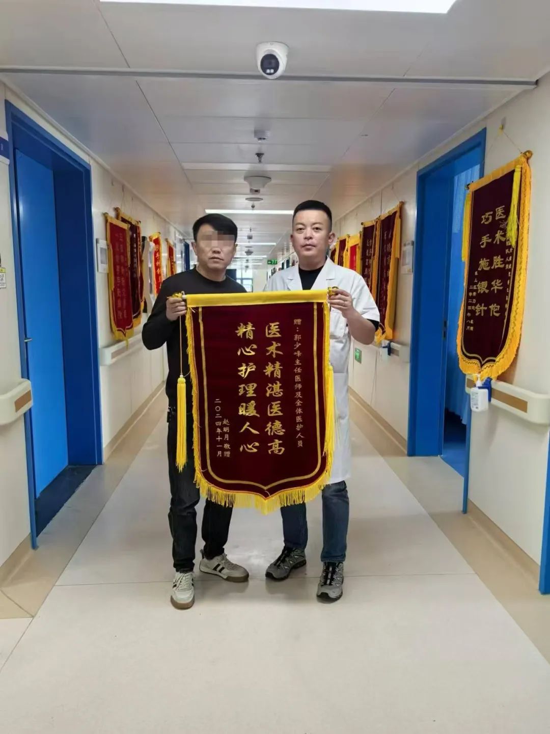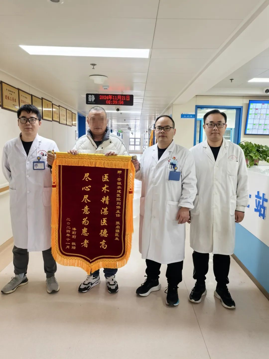 為表達感激之情,潘女士特意贈送錦旗,感謝劉偉副主任醫(yī)師和張啟強醫(yī)生的精湛醫(yī)術與高尚醫(yī)德。