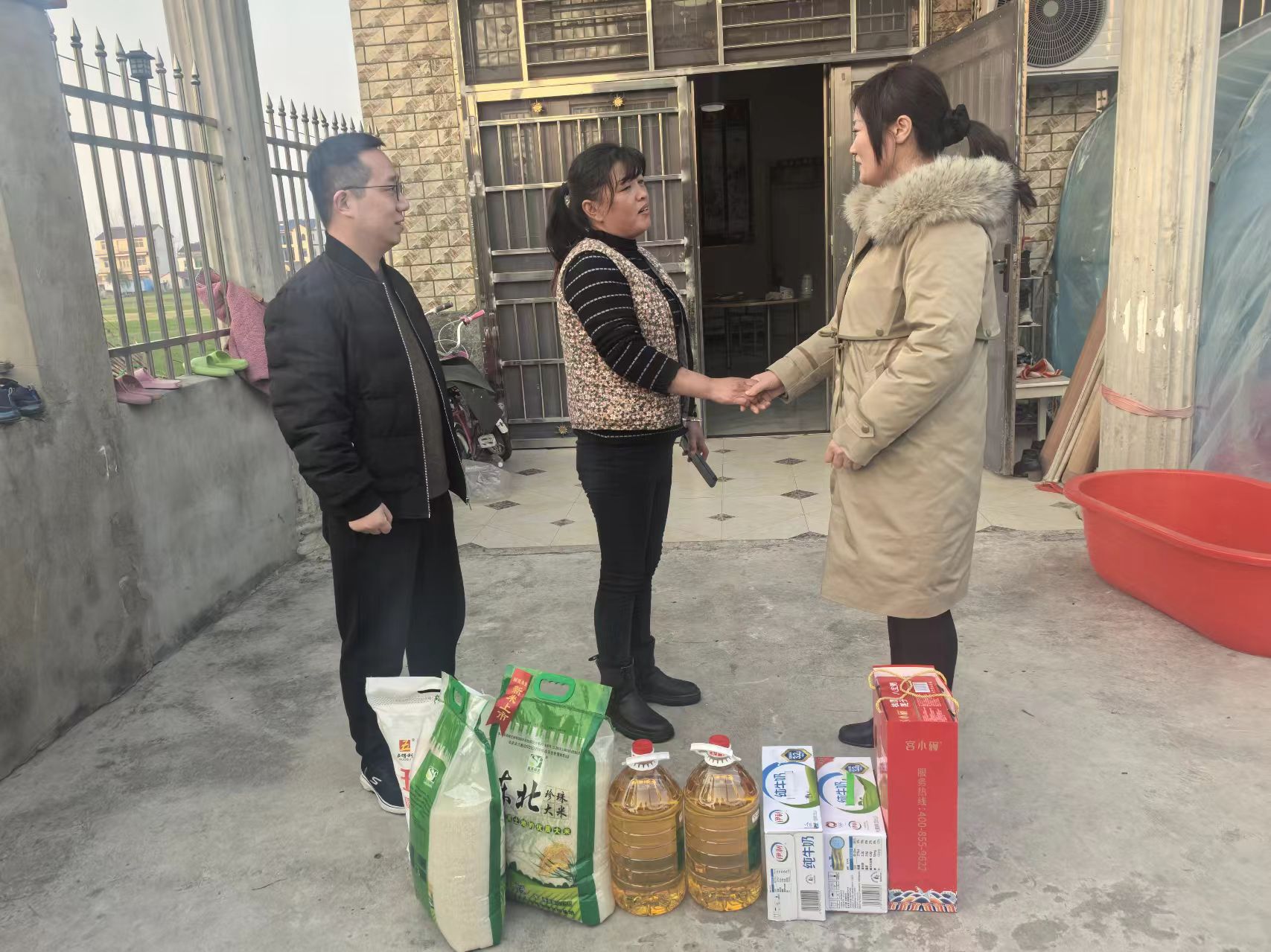 支部黨員代表在古城鎮(zhèn)新化村書記張金伍的帶領(lǐng)下,來到懷遠(yuǎn)縣新化村困難群眾王葉梅家中,為她們送去了米、面、油、牛奶等生活用品。
