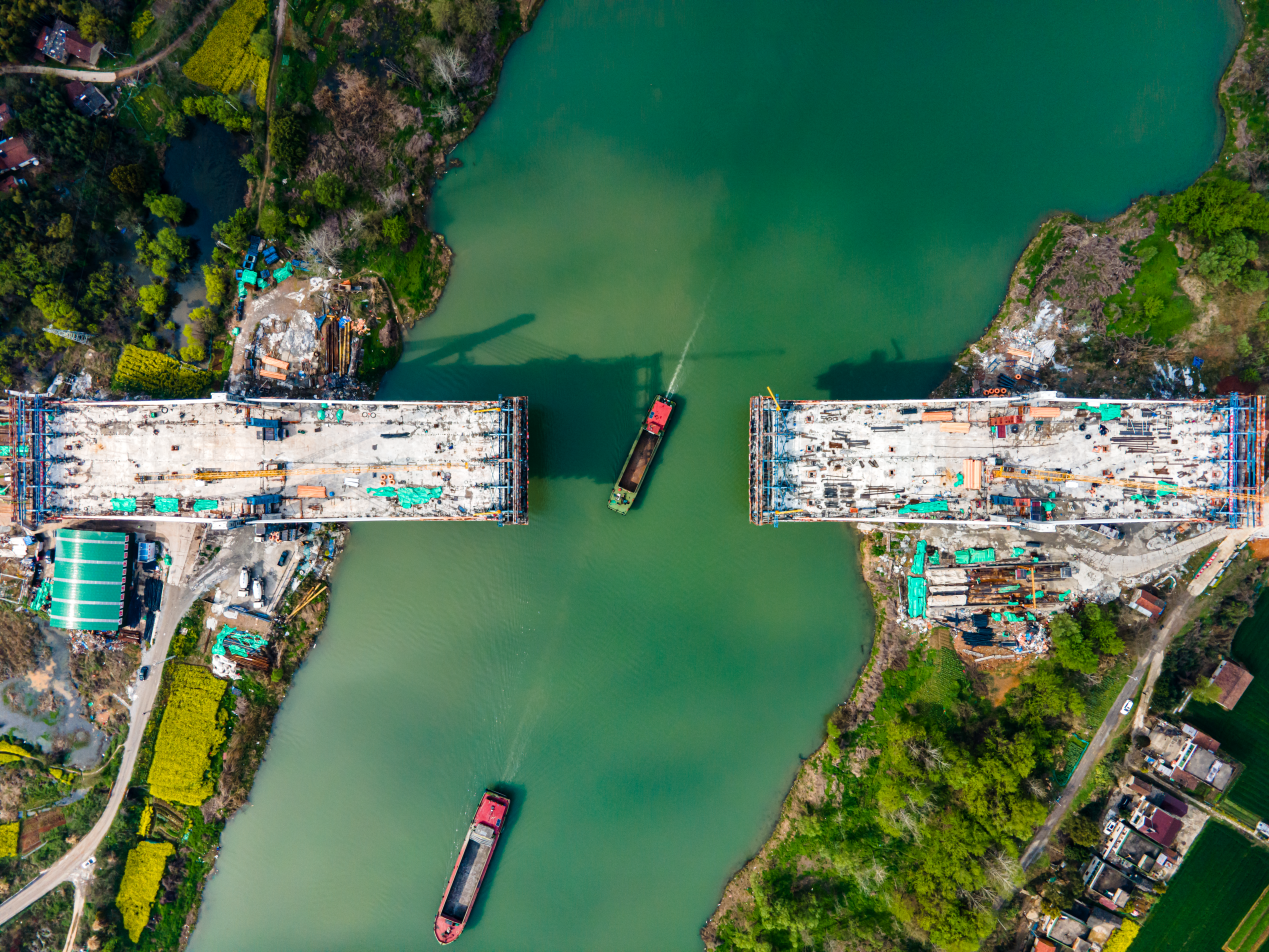 作為跨越水陽(yáng)江航道的重要橋梁,水陽(yáng)江特大橋的建設(shè)還面臨著如何在不影響航運(yùn)的情況下順利施工的挑戰(zhàn)。項(xiàng)目部?jī)?yōu)化施工組織方案,始終保持高標(biāo)準(zhǔn)的質(zhì)量控制,嚴(yán)格落實(shí)技術(shù)交底,采用懸臂掛籃施工法,并使用第三方監(jiān)控,對(duì)懸澆施工的線型控制進(jìn)行實(shí)時(shí)測(cè)量,保證各項(xiàng)控制指標(biāo)符合要求,確保橋梁全幅35米寬的橋面能夠一次性澆筑成型,同時(shí)保證了施工過(guò)程中對(duì)水陽(yáng)江航道的影響降到最低。在邊跨合龍施工前,召開(kāi)合龍段施工專題會(huì)議優(yōu)化施工和技術(shù)方案,采用臨時(shí)勁性骨架吊架施工方式,采取水箱配重以保證懸臂平衡對(duì)稱,澆筑時(shí)隨混凝土自重增加進(jìn)行精確減載。項(xiàng)目還先后開(kāi)展了《寬幅矮塔斜拉橋設(shè)計(jì)與建造關(guān)鍵技術(shù)研究》《皖南巖溶區(qū)橋梁樁基承載機(jī)理及施工關(guān)鍵技術(shù)研究》兩項(xiàng)省住建廳科技計(jì)劃項(xiàng)目研究,采用先進(jìn)的BIM技術(shù)、物聯(lián)網(wǎng)、互聯(lián)網(wǎng)、大數(shù)據(jù)、云計(jì)算、云存儲(chǔ)等技術(shù),構(gòu)建數(shù)智化工地。在多項(xiàng)硬科技的加持下,通過(guò)全體建設(shè)者的共同努力,水陽(yáng)江特大橋順利竣工,質(zhì)量和進(jìn)度均達(dá)到了預(yù)期目標(biāo)。