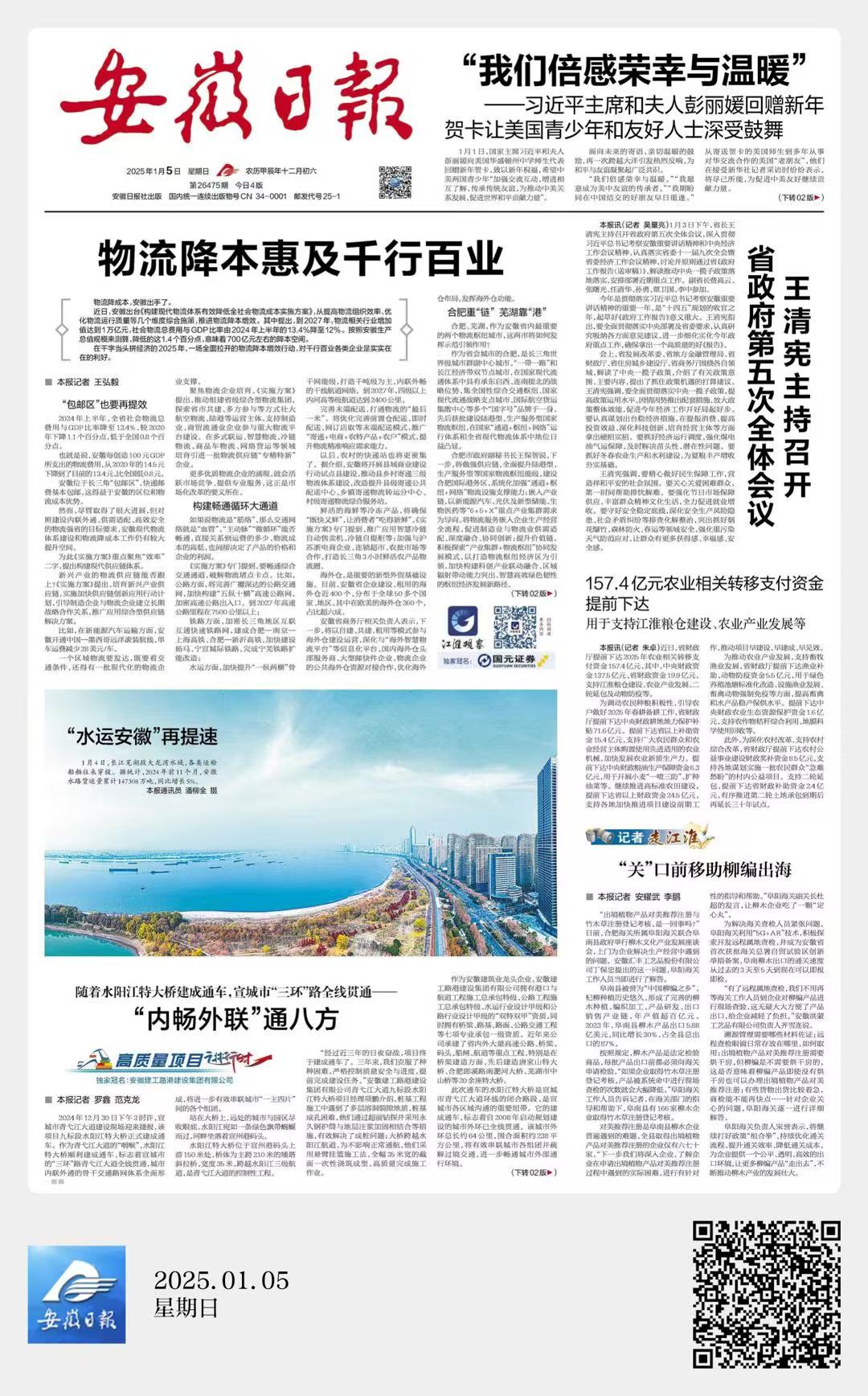 “原材料進場加上產(chǎn)品出貨,多的時候一天就有100多輛卡車進出,物流成本較大。”企業(yè)負責人章偉告訴記者,隨著青弋江大道建成通車,企業(yè)的貨物可以更加便捷地上高速,顯著降低物流成本、提升物流效率,同時員工上下班出行也更加順暢。