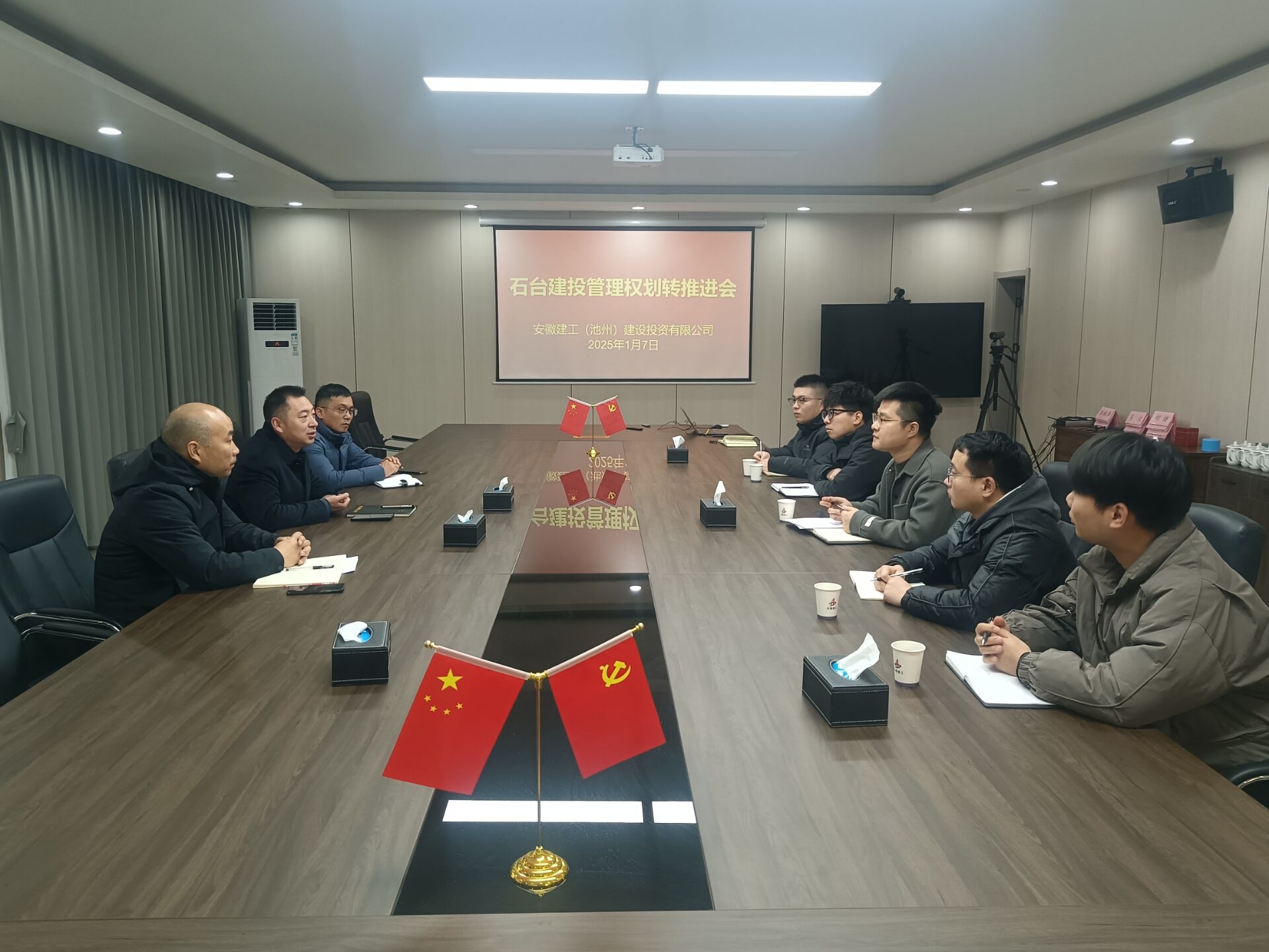1月7日,池州建投在6樓會(huì)議室召開安徽建工石臺建投管理權(quán)劃轉(zhuǎn)至池州建投推進(jìn)會(huì),池州建投黨委書記、董事長、總經(jīng)理王秋華主持會(huì)議,領(lǐng)導(dǎo)班子成員及石臺建投相關(guān)管理人員參加會(huì)議。