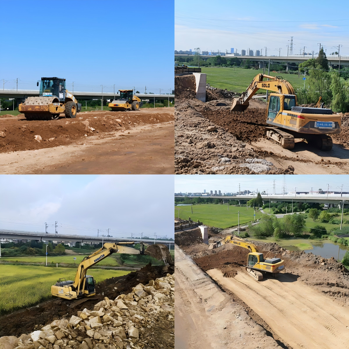 2024年上半年,連續(xù)的陰雨天氣給施工帶來(lái)了前所未有的挑戰(zhàn)。項(xiàng)目團(tuán)隊(duì)迎難而上,采取了一系列創(chuàng)新舉措,在天然河大橋左幅橋頭高填方施工中,項(xiàng)目團(tuán)隊(duì)創(chuàng)新性地采用廠拌水泥改善碎石土進(jìn)行路基填筑,解決了陰雨天氣對(duì)路基施工的影響。在天然河橋右幅橋頭高填方施工時(shí),面對(duì)黃梅山土源含水量高的問(wèn)題,項(xiàng)目團(tuán)隊(duì)積極協(xié)調(diào)使用山皮石進(jìn)行填筑,并采取路肩墻防護(hù)措施,既加快了施工進(jìn)度,又確保了路基的穩(wěn)定性和施工質(zhì)量。