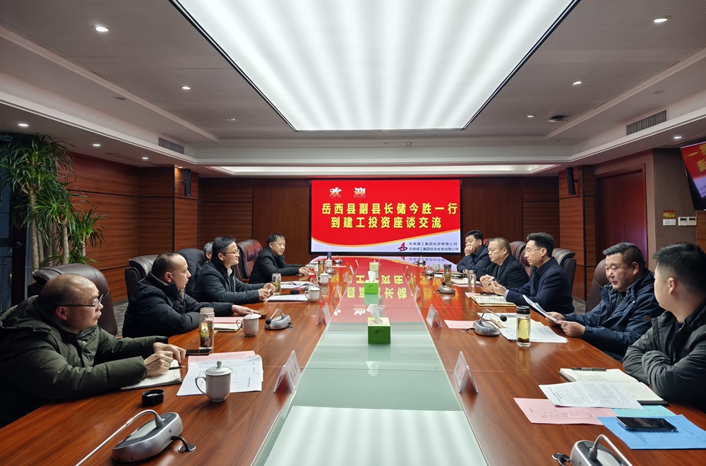 2025年1月9日下午,岳西縣副縣長(zhǎng)儲(chǔ)今勝一行到訪建工投資公司,公司黨委書記、總經(jīng)理謝洪兵熱情接待并主持召開座談會(huì),雙方就岳西項(xiàng)目有關(guān)工作開展深入交流。