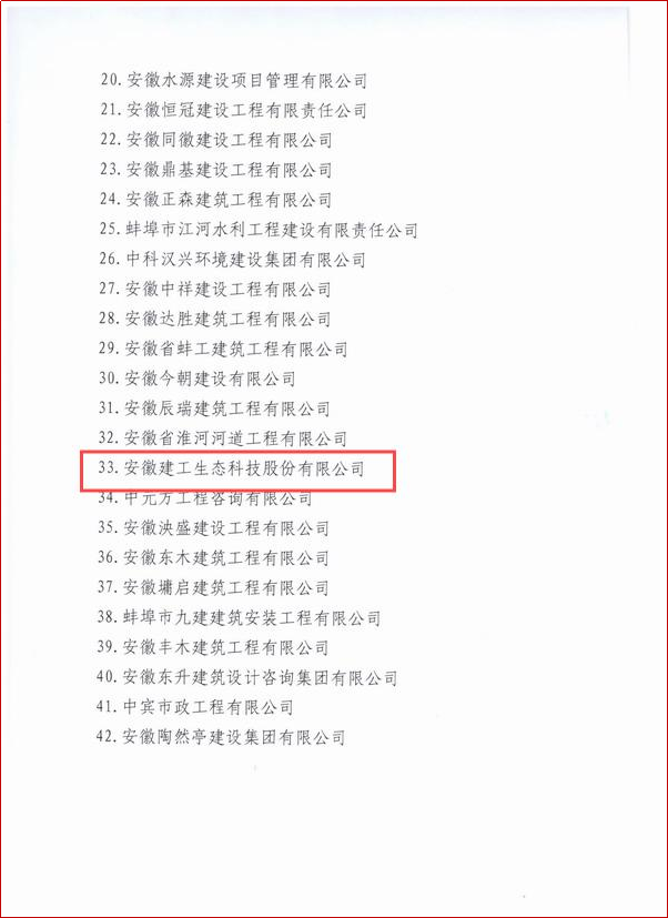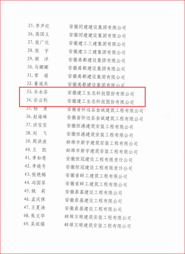 近日,蚌埠市建筑業(yè)協(xié)會專家評審委員會公布評選結(jié)果,安徽水利及所屬安徽建工生態(tài)科技股份有限公司獲評2023年度“蚌埠市優(yōu)秀建筑企業(yè)”,安徽水利員工喬玉偉、夏松松、王大祥、朱鵬程、張瑞、李凱、王相狀、余濤、楊金花、徐健、胡廣超、樂永芬、孫云利等13人榮獲“蚌埠市優(yōu)秀項目經(jīng)理”稱號。