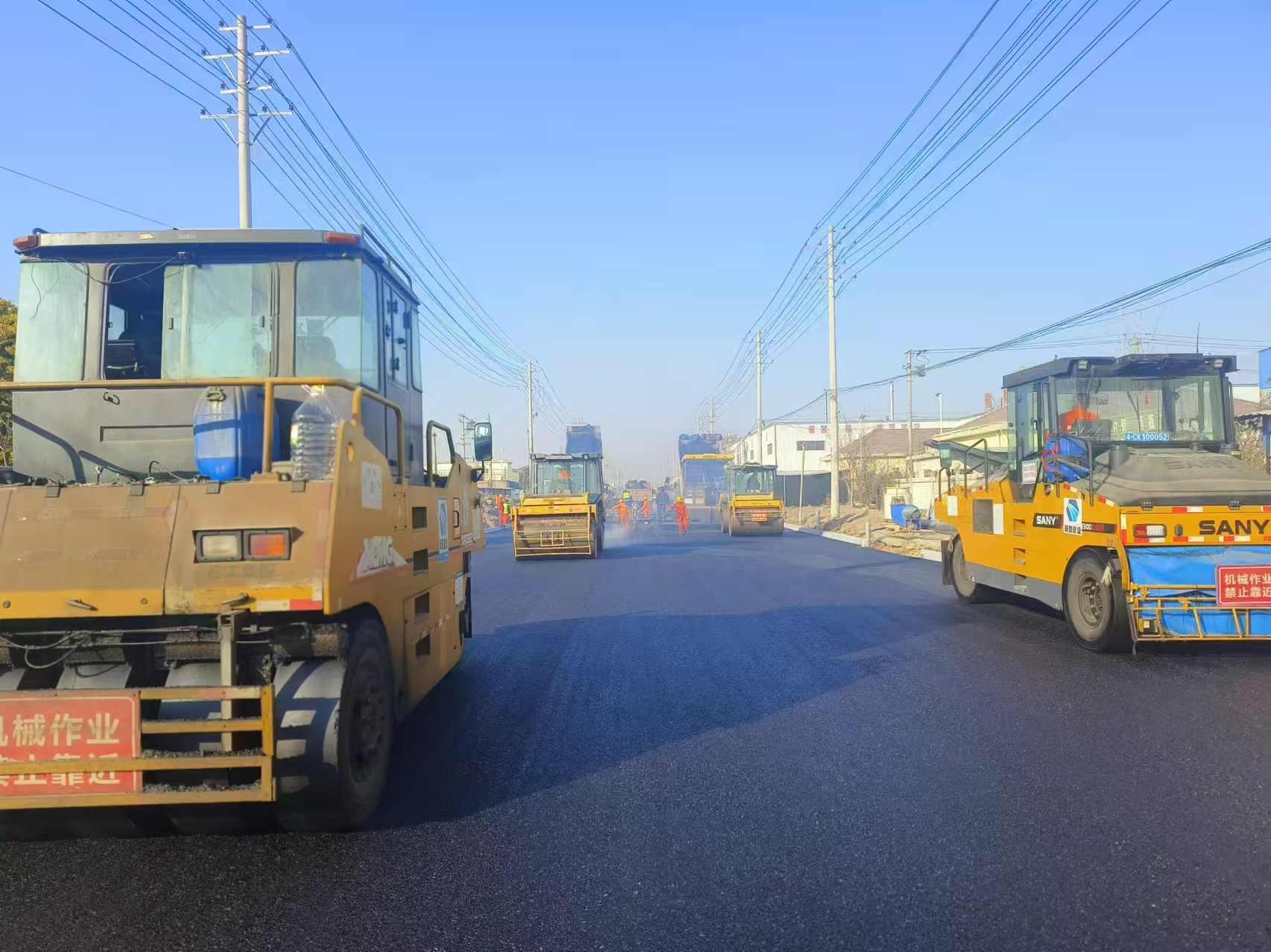 1月11日上午,安徽水利界首市政道路工程光武科技園繁興四路項目瀝青攤鋪施工正式啟動。