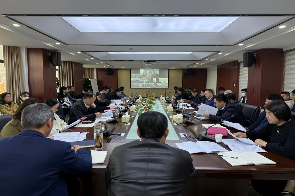 建工建材領(lǐng)導(dǎo)班子、機關(guān)全體人員在主會場,各子公司、建管辦、各站點參會人員通過視頻形式參加了此次會議。