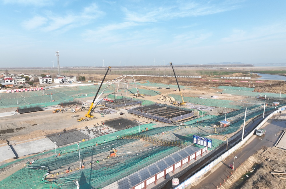 楊林退洪閘自開(kāi)工以來(lái),面臨拆遷協(xié)調(diào)難度大、臨江深基坑防汛壓力大、地質(zhì)條件復(fù)雜及降排水技術(shù)難度高等多重挑戰(zhàn),項(xiàng)目集中優(yōu)質(zhì)資源,施工黃金期全天候搶工,多班分組同步作業(yè),目前完成了閘室及上游魚(yú)道翼墻基礎(chǔ)處理,閘室、左右魚(yú)道各完成兩聯(lián)鋼筋模板制安等施工任務(wù)。