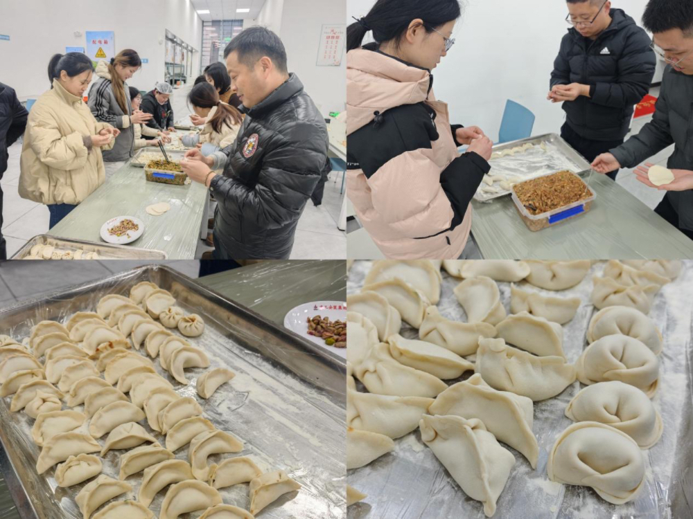 為了讓大家體會到春節(jié)濃厚的節(jié)日氛圍,公司還在食堂組織了包餃子活動。工作人員在食堂早早地準(zhǔn)備好了餃子皮、餡料等食材,各位職工在食堂師傅的指導(dǎo)下,分工協(xié)作,不一會兒,一個個形態(tài)各異的餃子擺滿了托盤,白白胖胖的餃子裝的是大家對新一年滿滿的期望和祝福,餃餡兒里還藏了開心果,祝愿大家來年開心快樂。熱氣騰騰的餃子出鍋后,在溫馨、歡樂的氛圍中大家一起品嘗了自己手工制作的水餃,一同感受年味,喜迎春節(jié)。
