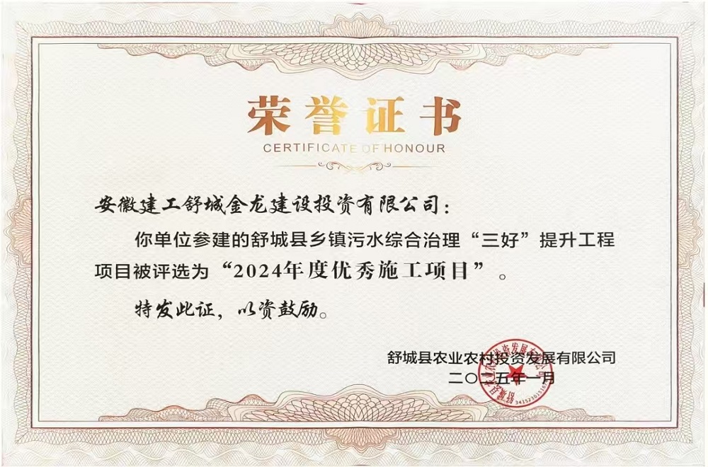 舒城縣鄉(xiāng)鎮(zhèn)污水綜合治理“三好”提升工程項(xiàng)目,入選“2024年度優(yōu)秀施工項(xiàng)目”。