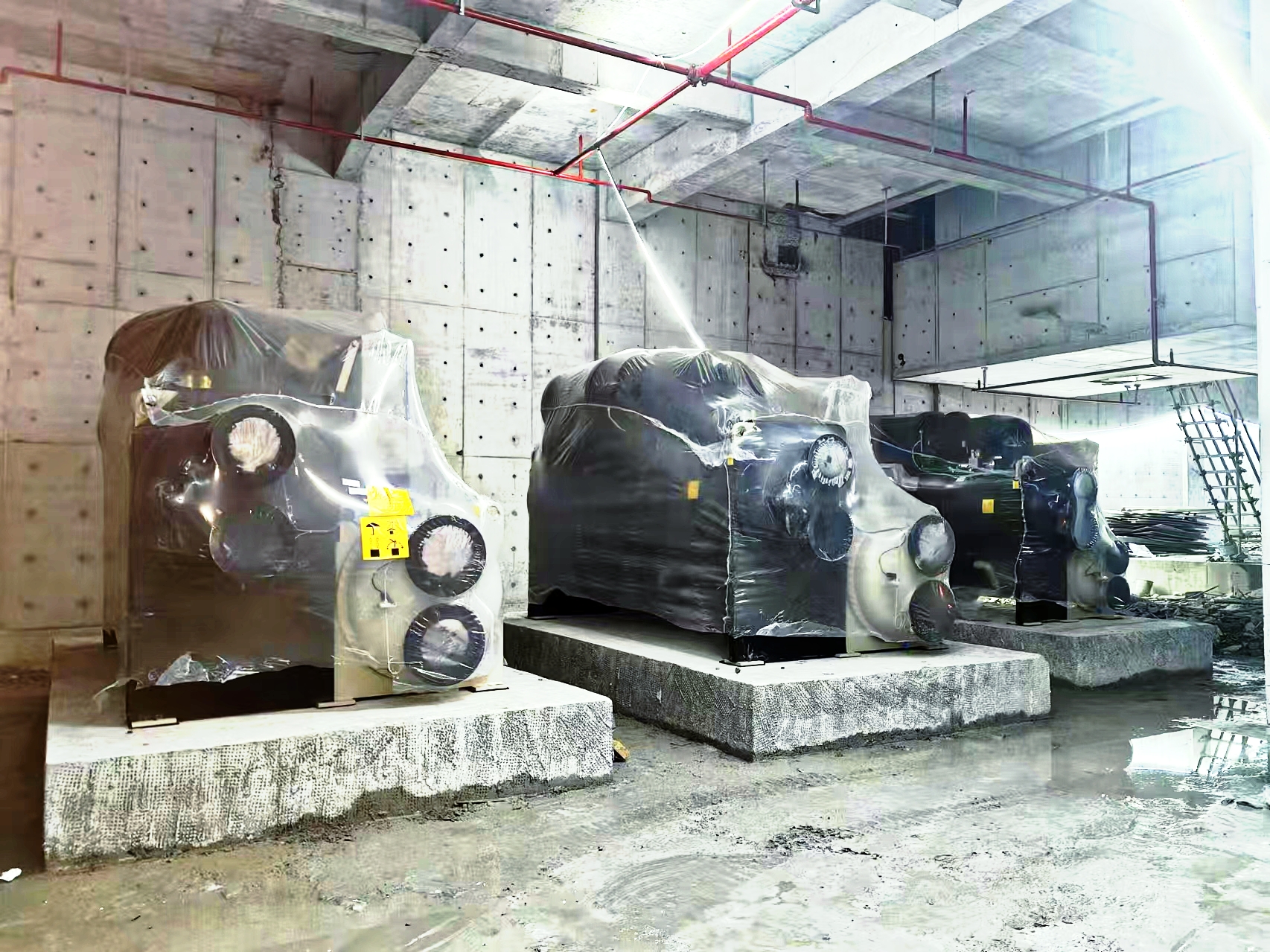 此次吊裝作業(yè)涵蓋冷水機組、分水器、集水器、水泵等總計40余臺重型設(shè)備,這些設(shè)備體積龐大、重量驚人,對組織協(xié)調(diào)能力和吊裝技術(shù)水平都提出了嚴(yán)苛的要求。為確保施工作業(yè)萬無一失,分公司從嚴(yán)從實制定了施工方案和吊裝預(yù)案,領(lǐng)導(dǎo)班子及相關(guān)職能科室負(fù)責(zé)人全程在現(xiàn)場進行指導(dǎo)作業(yè)和安全交底。項目部也未雨綢繆,精心組織骨干管理和施工團隊,對相關(guān)物資、機械、設(shè)備等進行了全面籌備和部署。同時,要求設(shè)備廠家技術(shù)人員到場提供支持,確保吊裝過程中任何技術(shù)難題都能得到迅速而有效地解決。