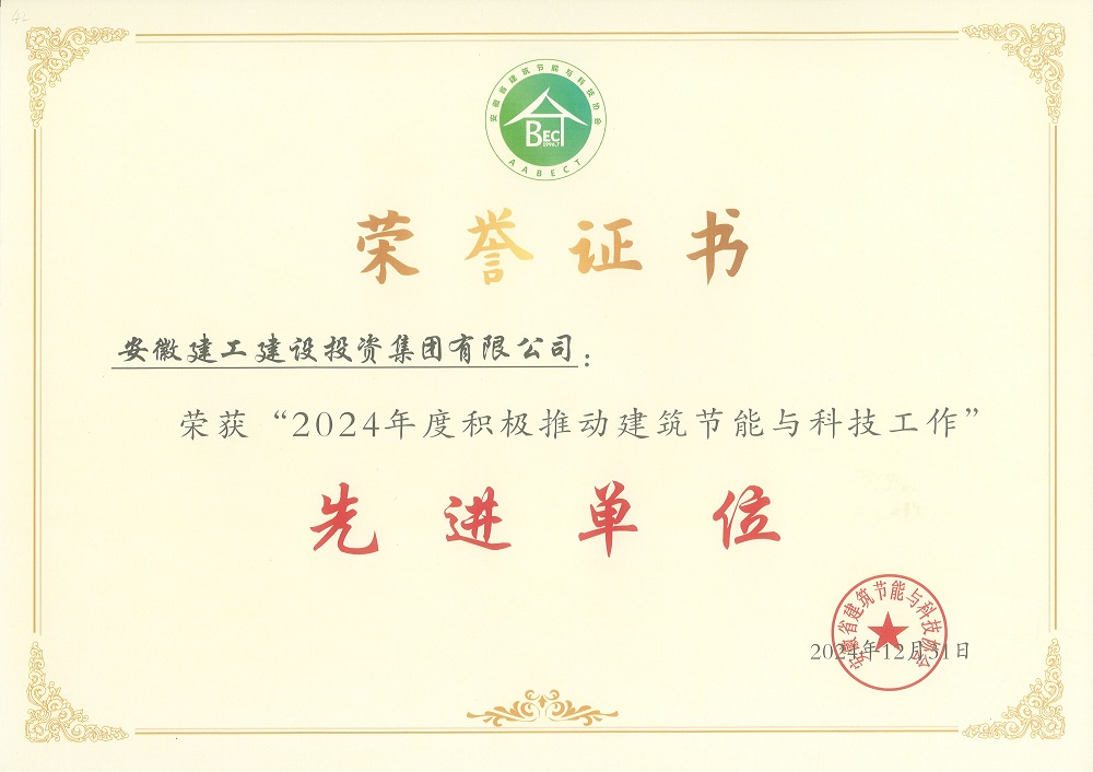 近日,建工建投集團(tuán)喜獲安徽省建筑節(jié)能與科技協(xié)會(huì)頒發(fā)的“2024年度積極推動(dòng)建筑節(jié)能與科技工作先進(jìn)單位”稱號(hào)。