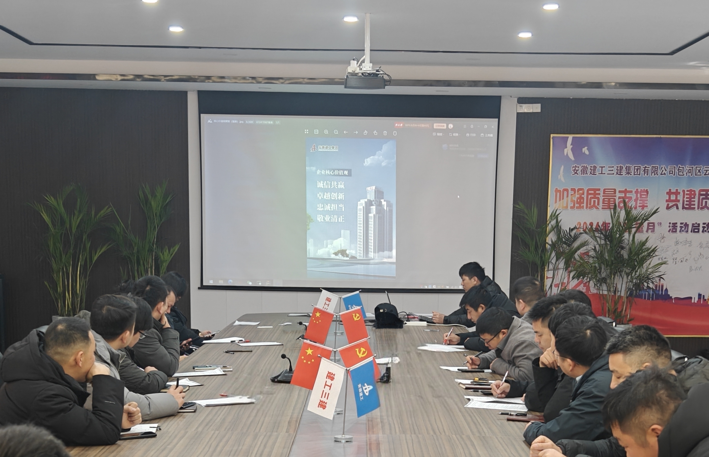 2月7日下午,建工三建召開品牌建設(shè)暨項(xiàng)目管理專題會(huì),會(huì)議重點(diǎn)對集團(tuán)最新核心價(jià)值觀進(jìn)行了學(xué)習(xí)宣貫,并要求公司機(jī)關(guān)各部門、所屬單位、各項(xiàng)目要及時(shí)把企業(yè)核心價(jià)值觀宣貫到每名職工,將核心價(jià)值觀蘊(yùn)含的豐富內(nèi)涵和實(shí)踐要求落實(shí)到具體的崗位工作中去,為集團(tuán)轉(zhuǎn)型發(fā)展、高質(zhì)量發(fā)展、大發(fā)展貢獻(xiàn)三建力量。