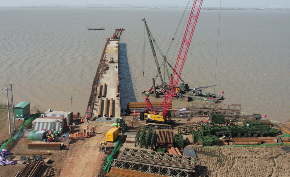 2 月 6 日,城東湖西岸拌合站鋼筋大棚基礎開挖、上料口模板拆除工作順利完成,鋼筋大棚材料進場;城東湖兩岸鋼棧橋橋面板鋪設穩(wěn)步推進,鋼管樁打設有序開展,施工現(xiàn)場處處洋溢著奮進的活力。